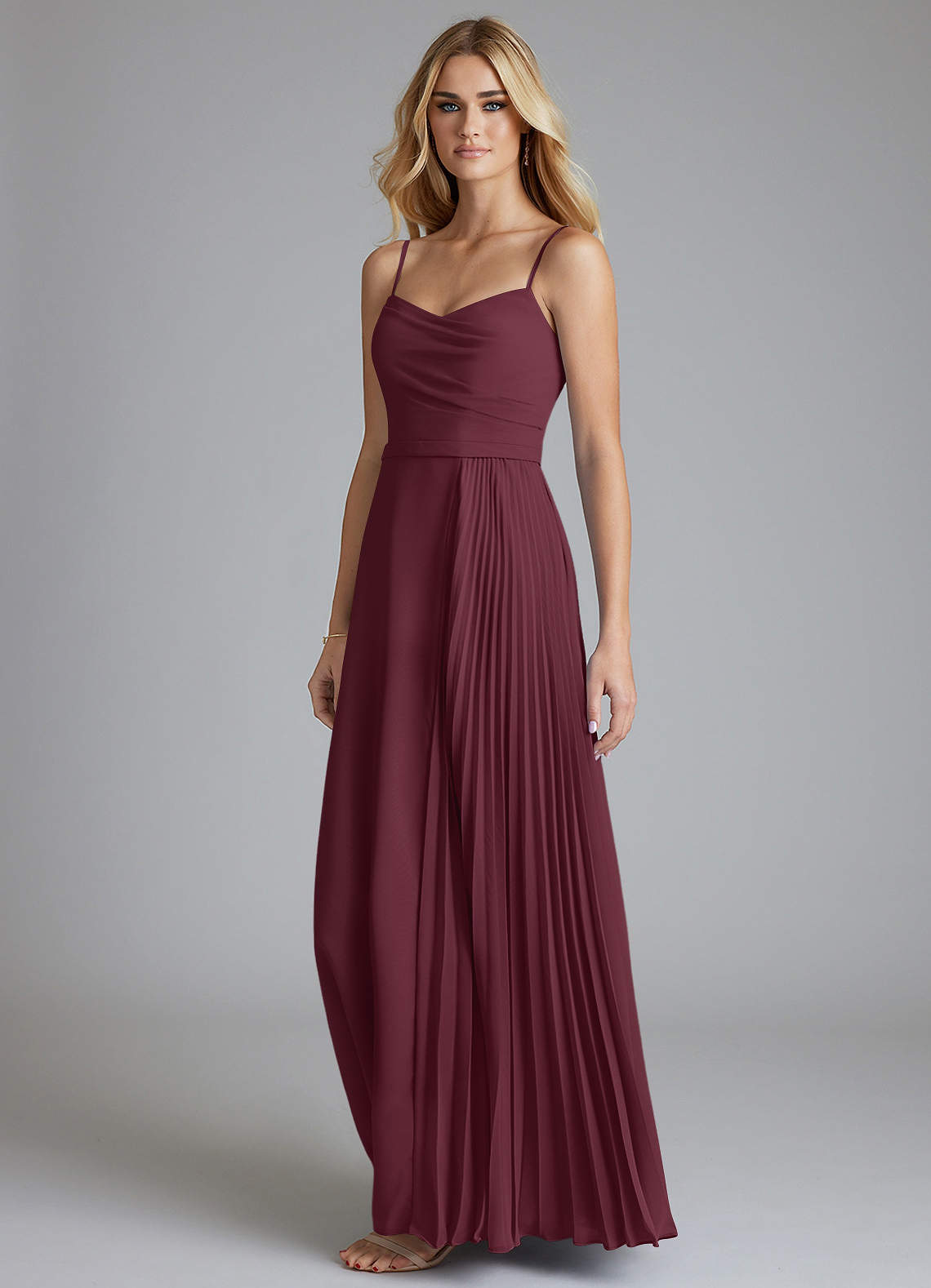 Dusty Sage A-Line Pleated Chiffon Dress