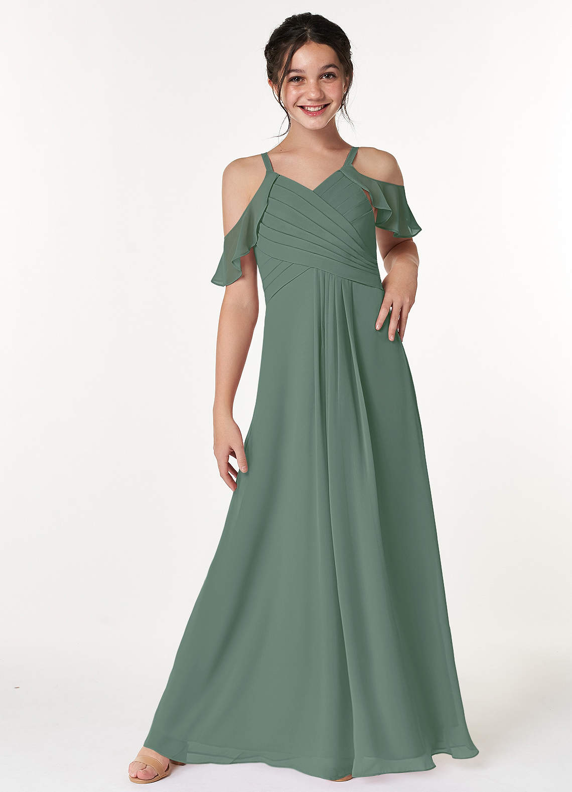 Eucalyptus A-Line Off the Shoulder Chiffon Dress