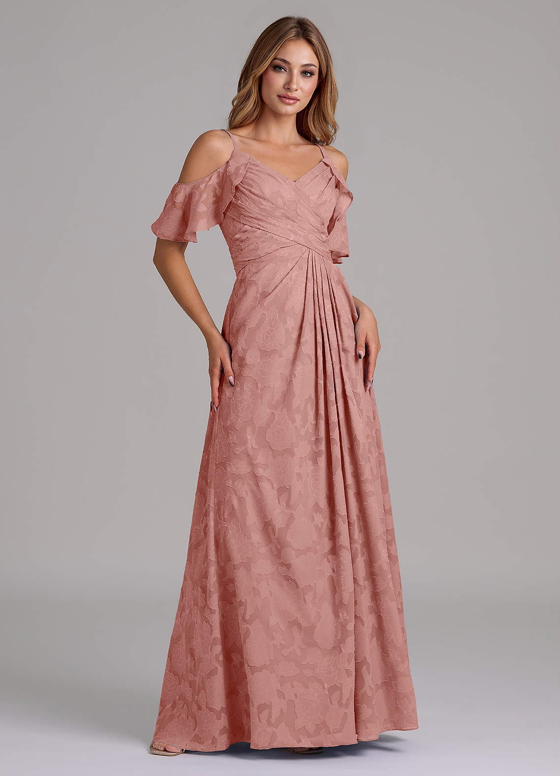 Rosette A-Line Off the Shoulder Floral Burnout Dress