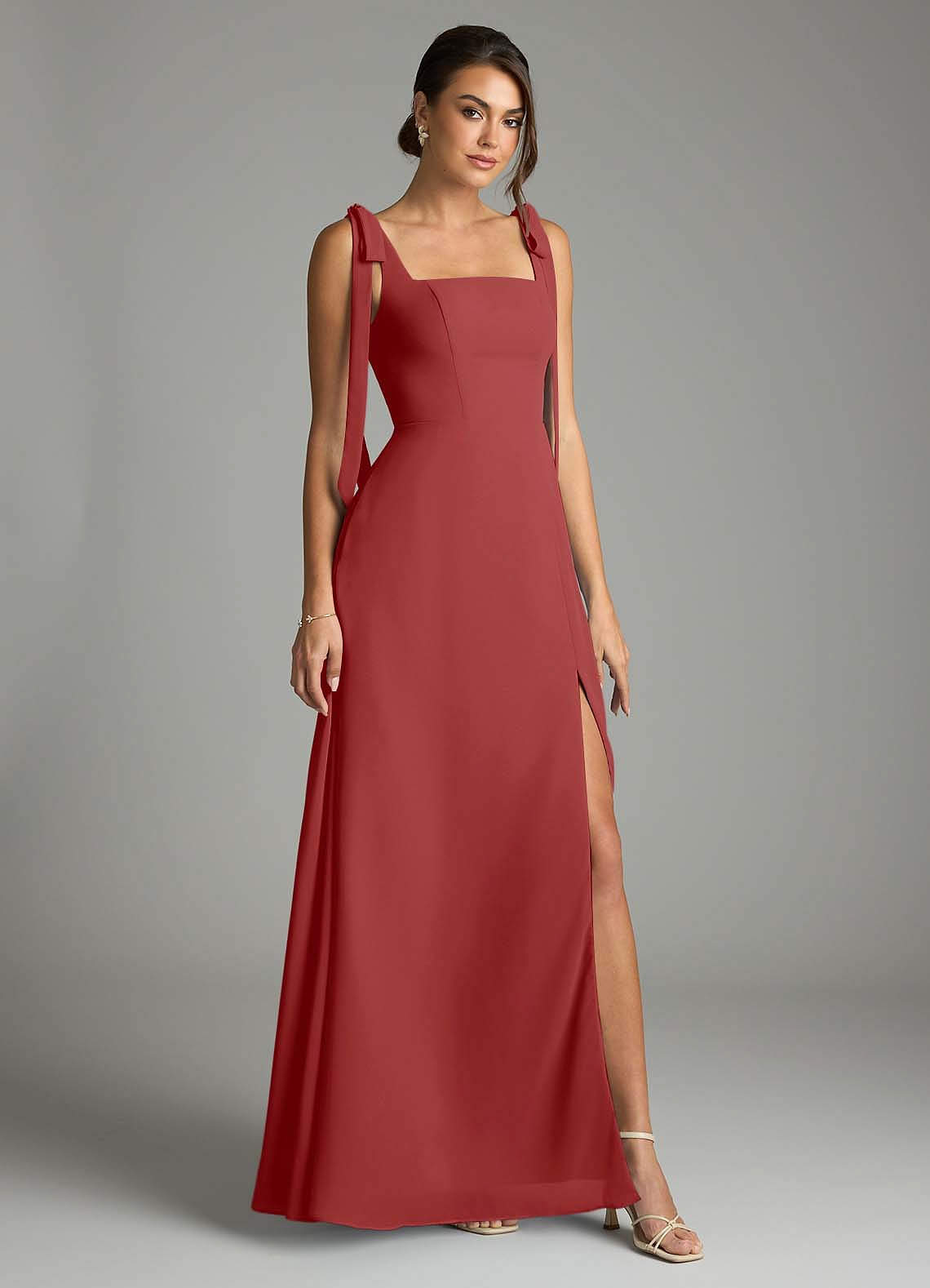 Rust A-Line with Pockets Chiffon Convertible Dress