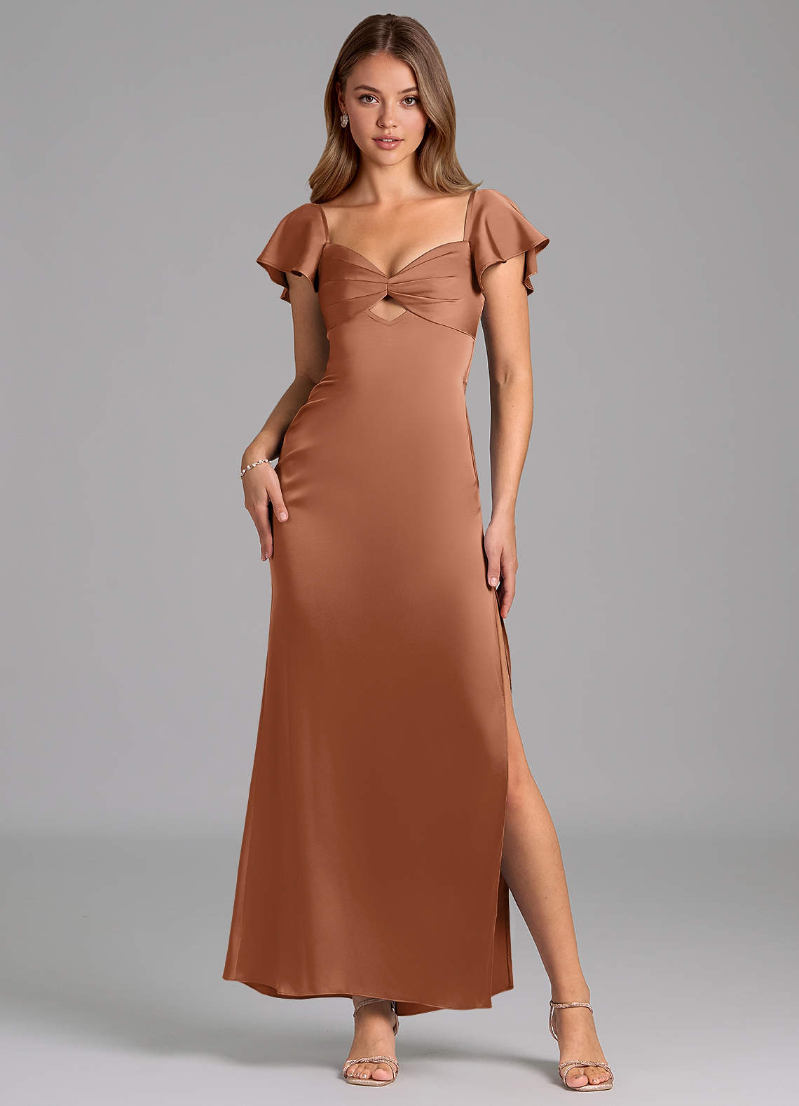 Bronzer Sheath Sweetheart Neckline Stretch Satin Dress