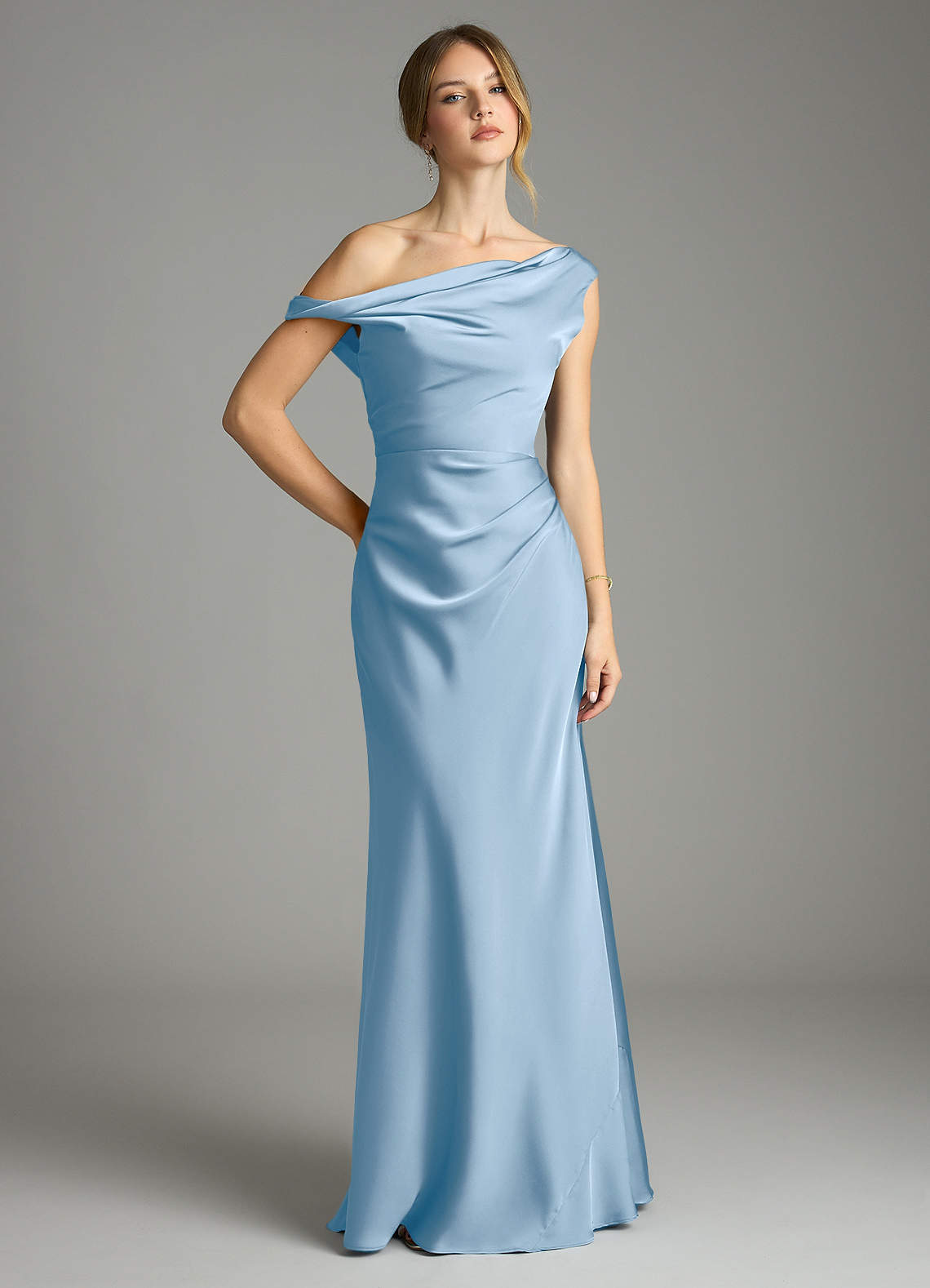 Powder Blue Mermaid Off the Shoulder Stretch Satin Dress