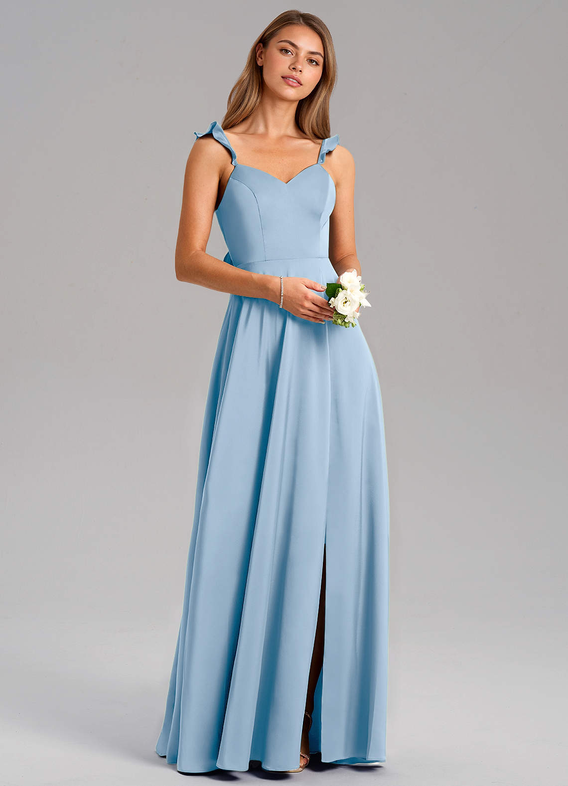 Powder Blue A-Line Stretch Satin Dress