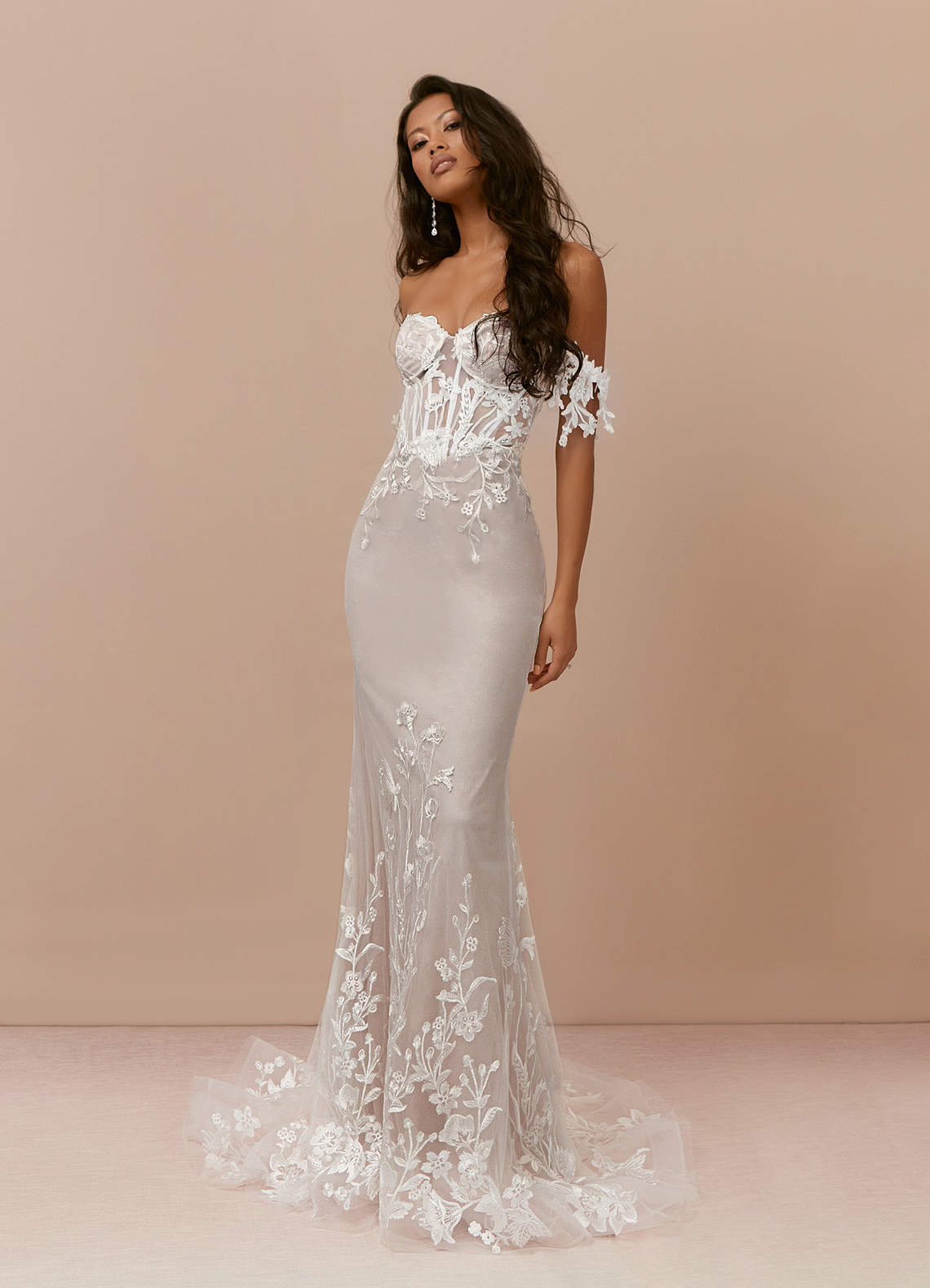 Diamond White Cocoa A-Line Sequins Tulle Dress