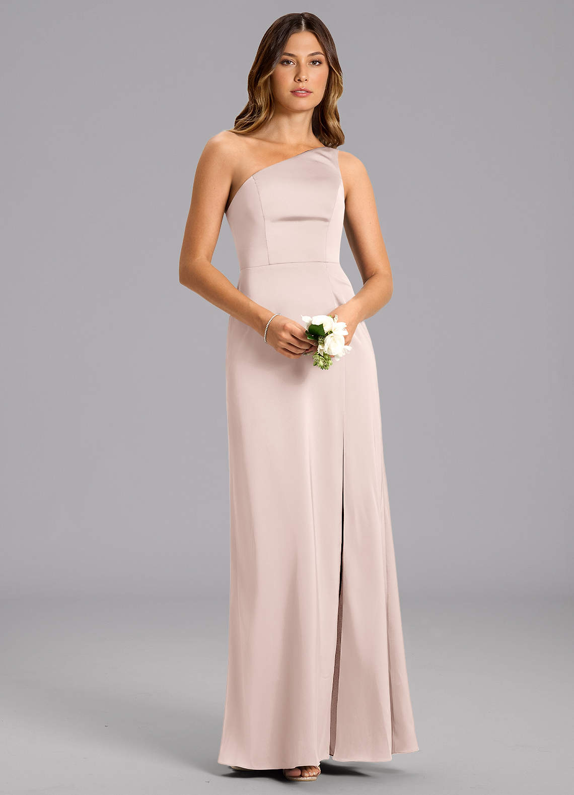 Blushing Pink A-Line One Shoulder Stretch Satin Dress