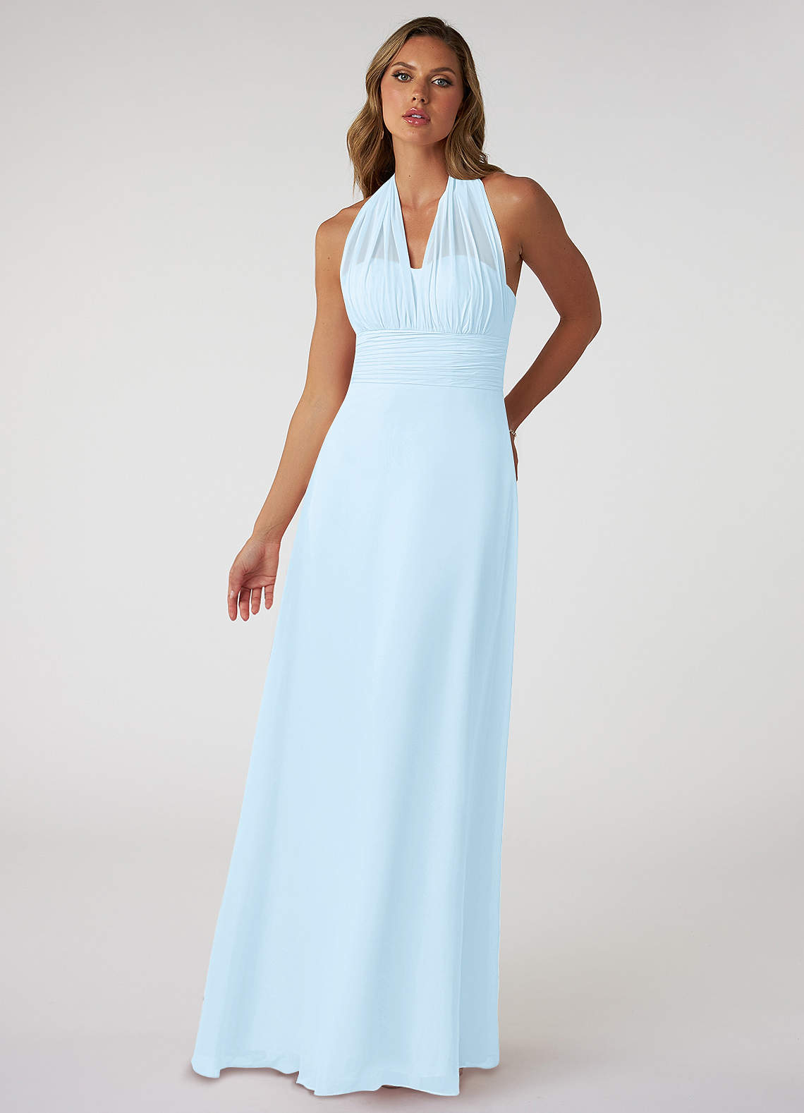 Sky Blue A-Line Strapless Chiffon Convertible Dress
