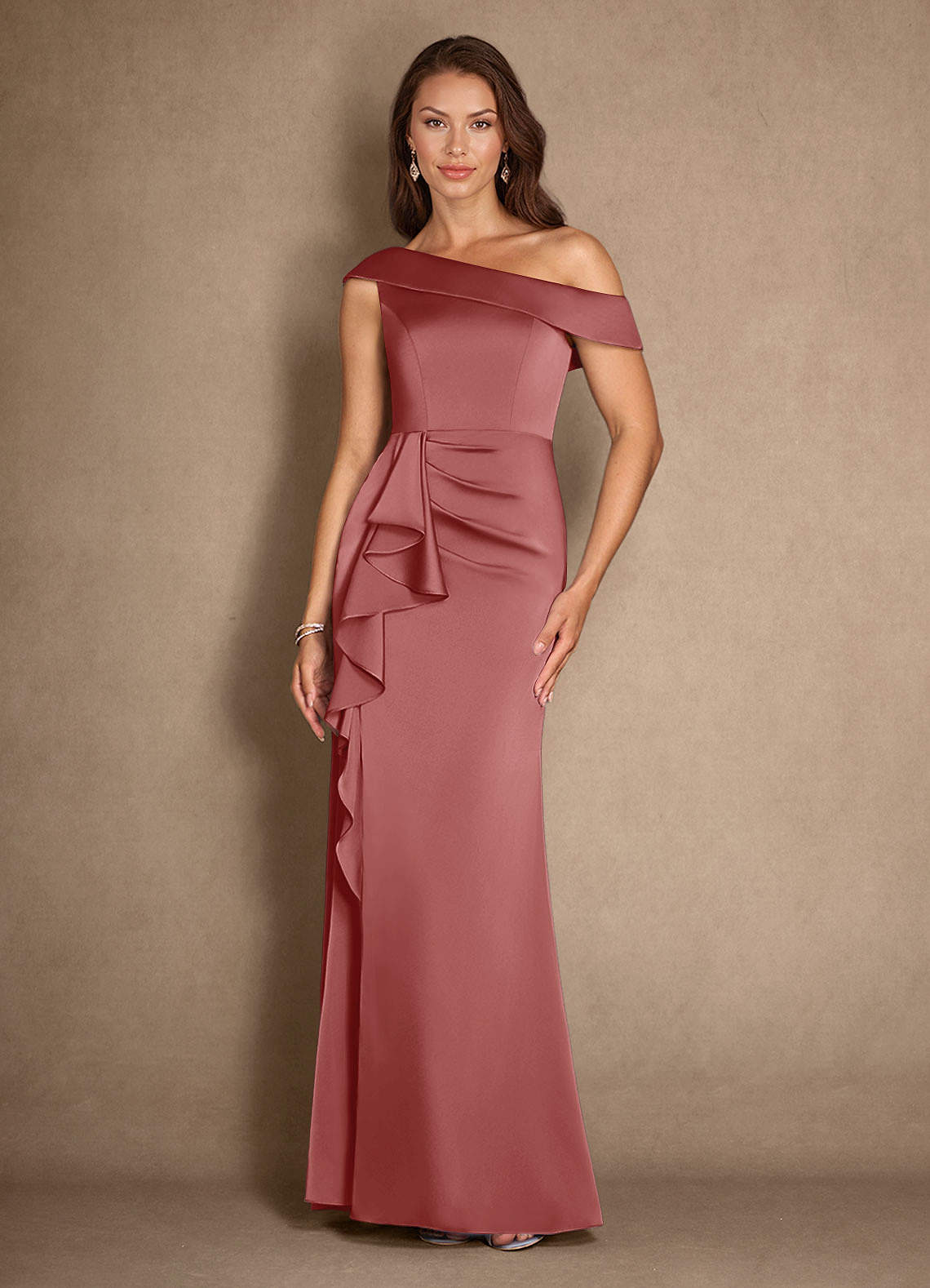 Antique Rose A-Line Pleated Stretch Satin Dress