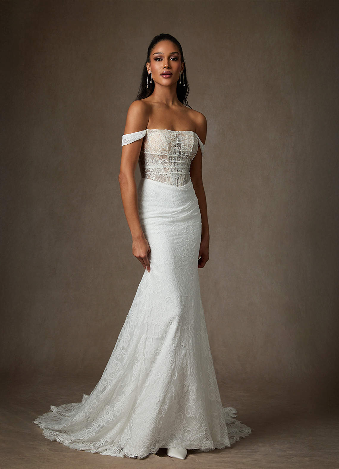 Diamond White Nude Mermaid Lace Dress
