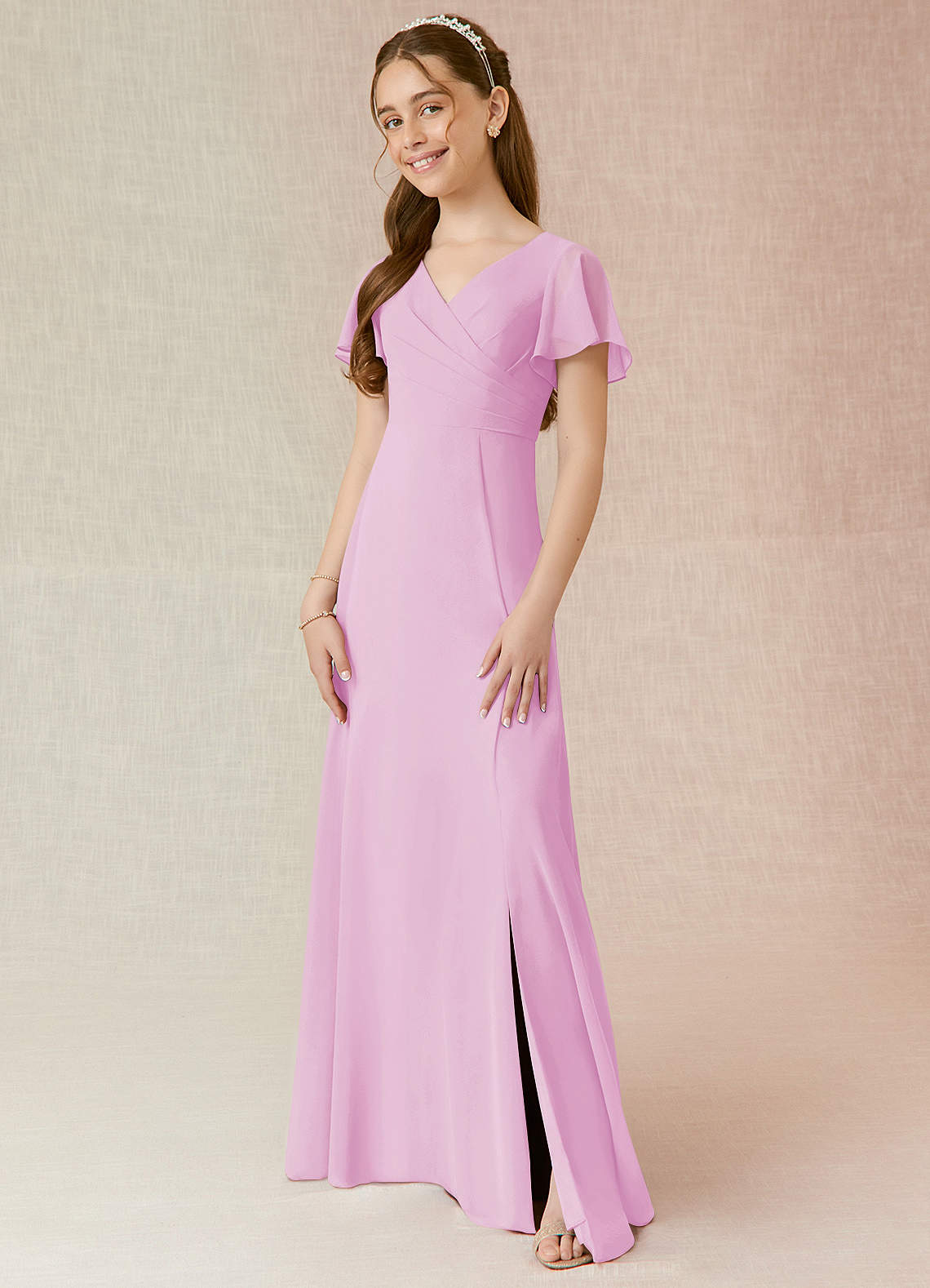 Candy Pink A-Line Ruched Chiffon Dress