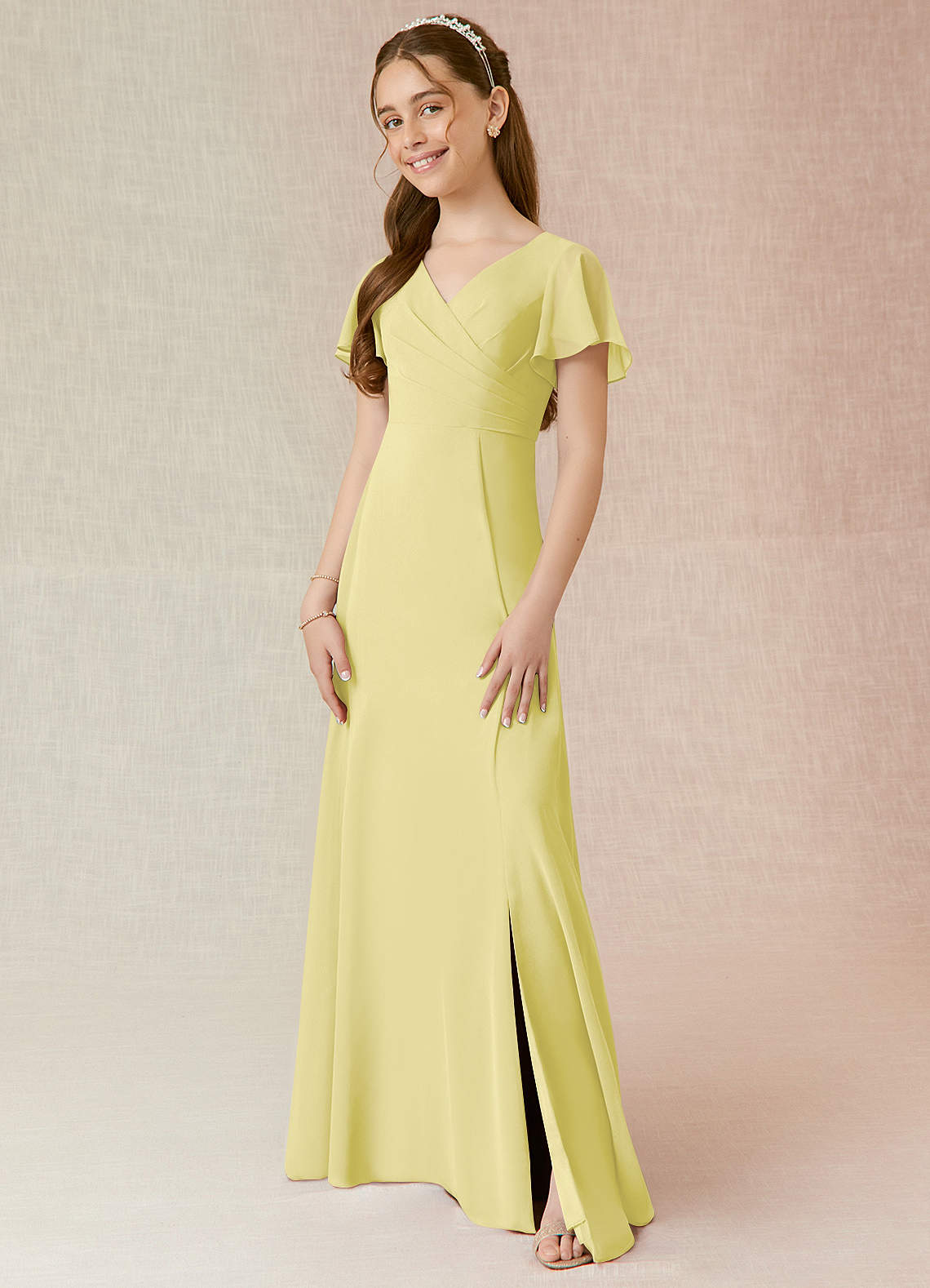 Lemon Sorbet A-Line Ruched Chiffon Dress