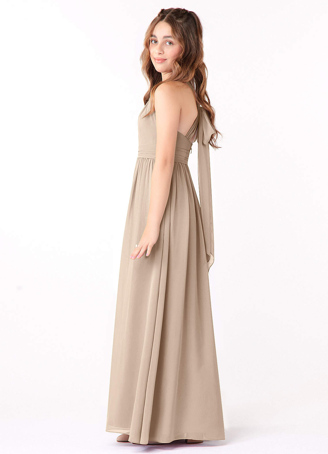 Taupe A-Line Ruched Chiffon Dress