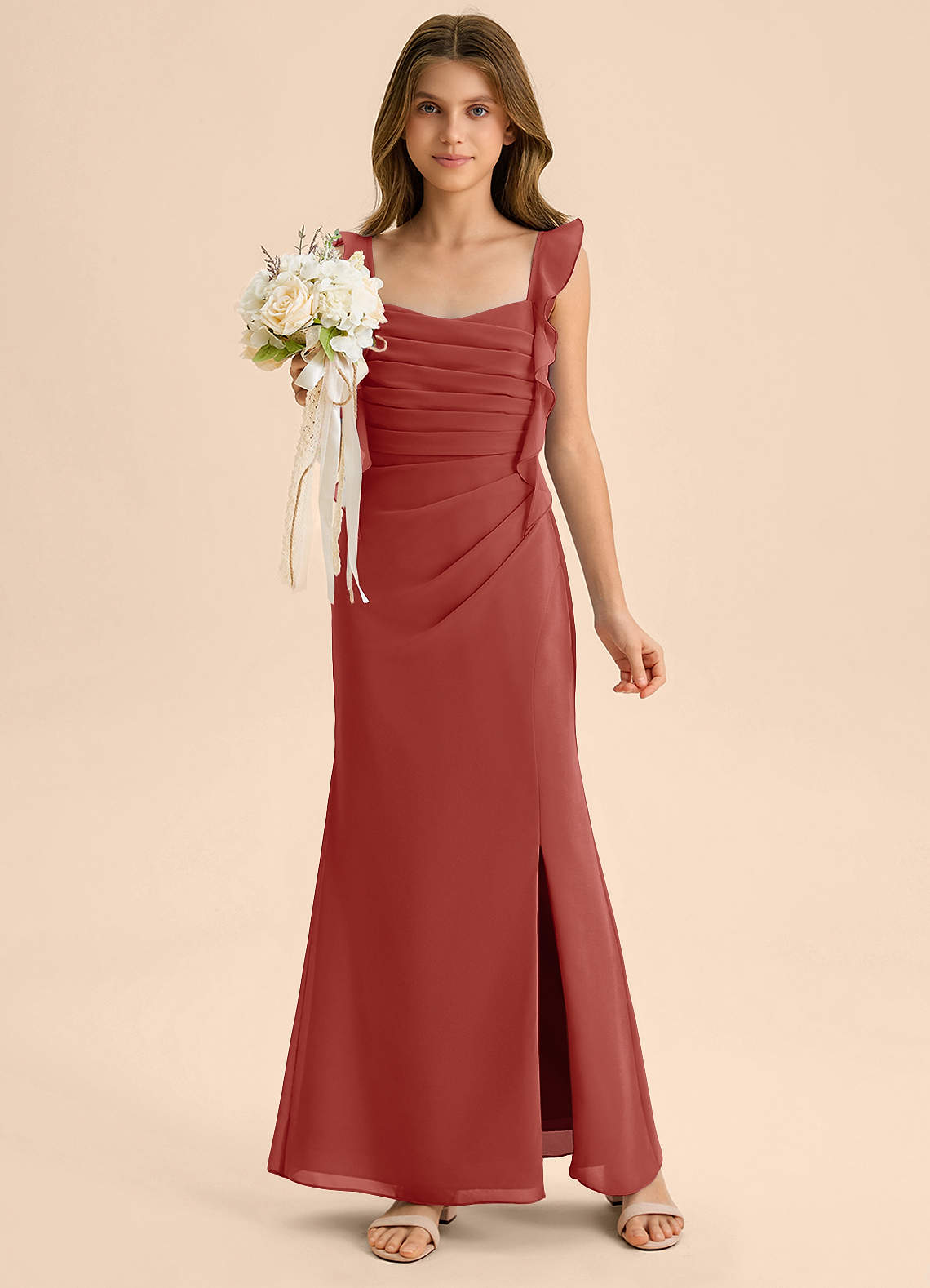 Terracotta Mermaid Sweetheart Neckline Chiffon Dress