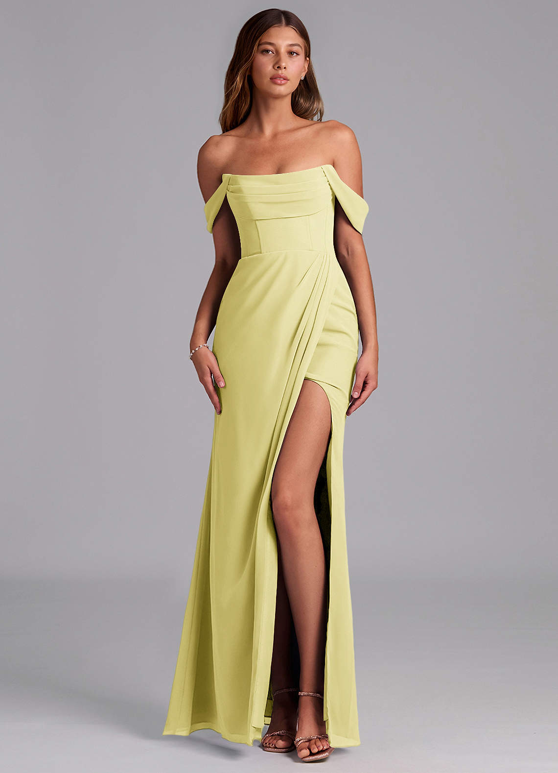 Lemon Sorbet Mermaid Off the Shoulder Chiffon Convertible Dress