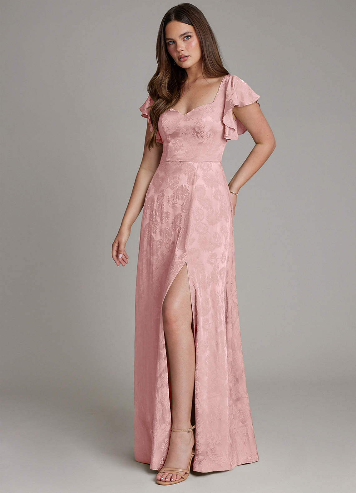 Rose Jacquard A-Line Ruched Jacquard Dress