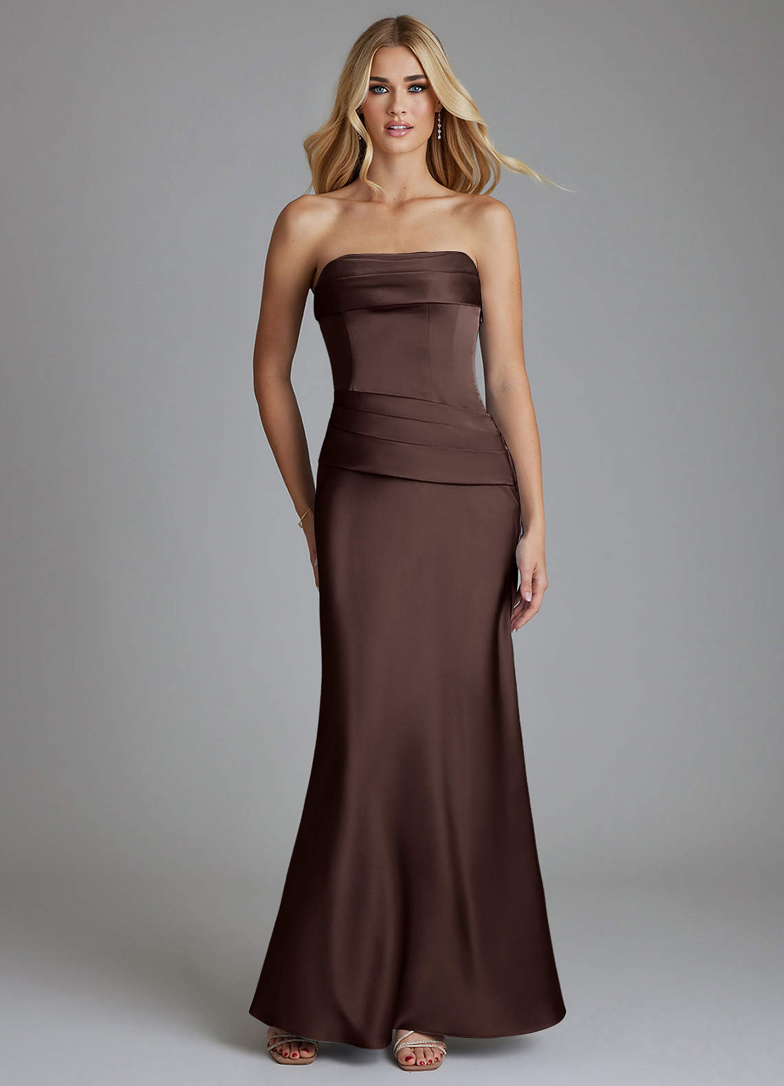 Azazie Lenya Final Sale Dusty Rose Sheath Pleated Stretch Satin Dress image1