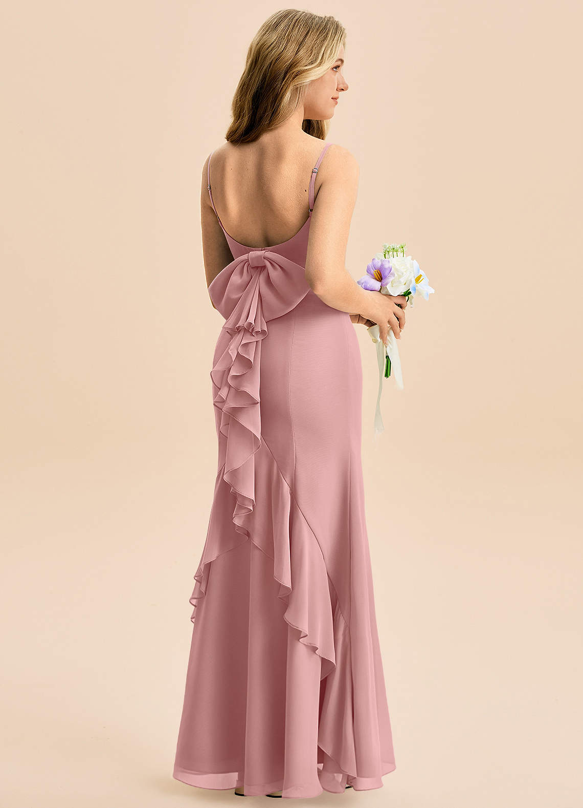 Dusty Rose Mermaid Bow Chiffon Dress
