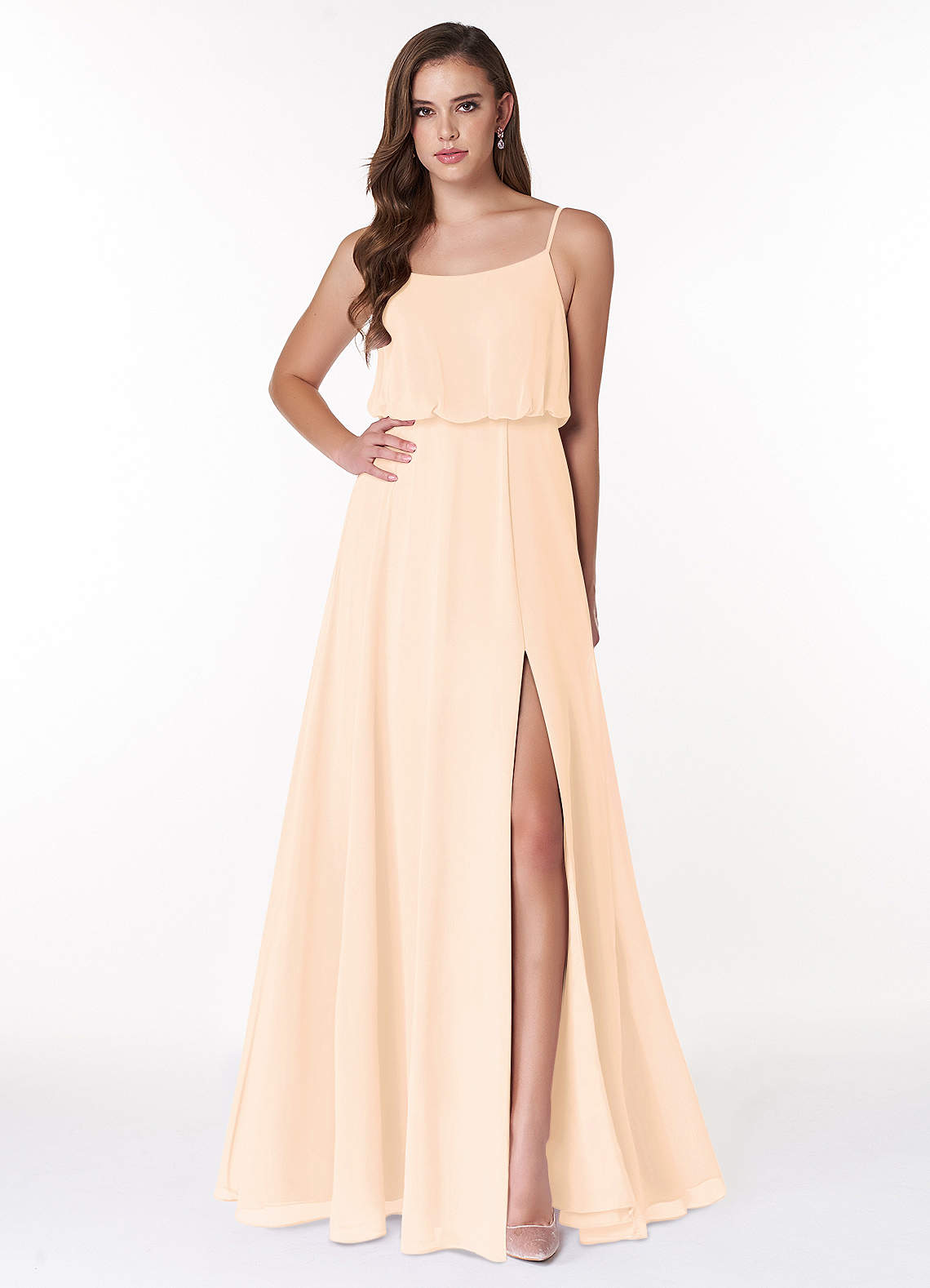 Pearl Pink A-Line Scoop Blouson Chiffon Dress