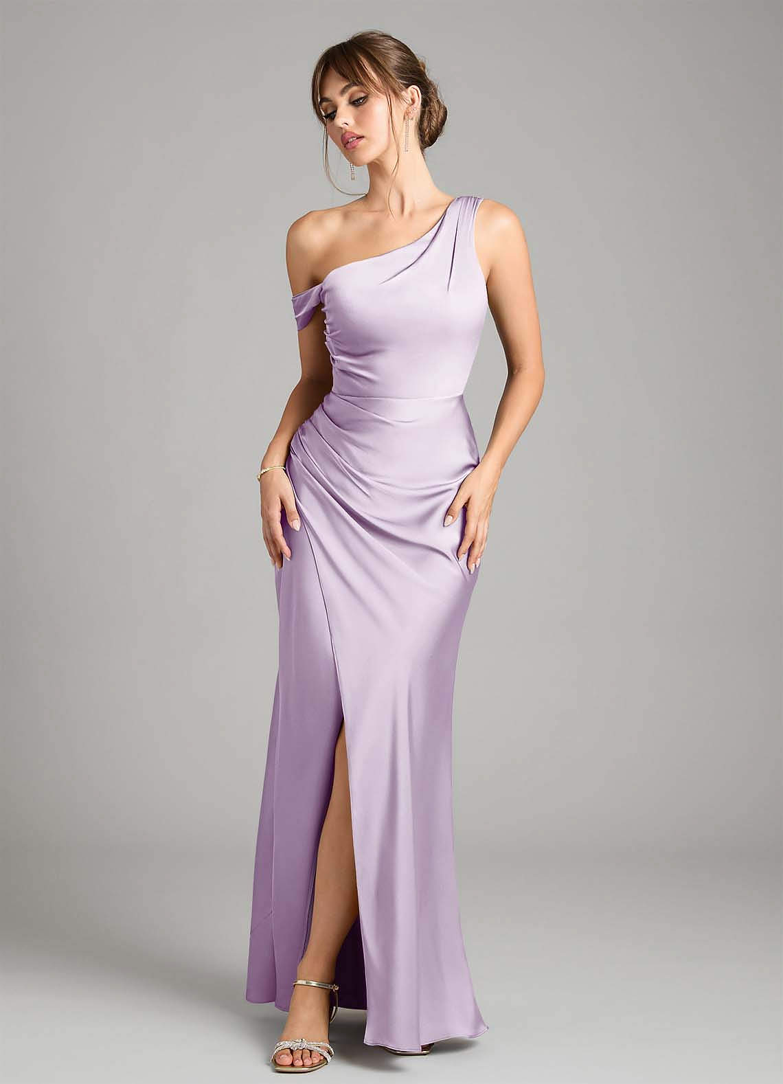 Frosted Lilac Mermaid One Shoulder Stretch Satin Convertible Dress