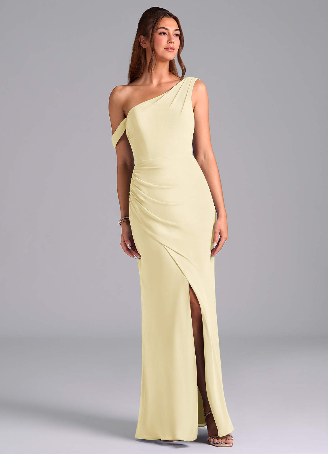 Azazie Madelyn Bridesmaid Dresses Lemon Sorbet Mermaid One Shoulder Chiffon Convertible Dress image1