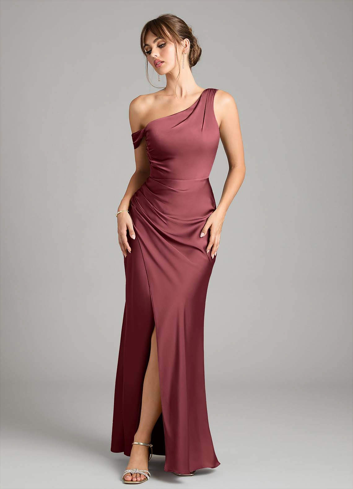 Merlot Mermaid One Shoulder Stretch Satin Convertible Dress
