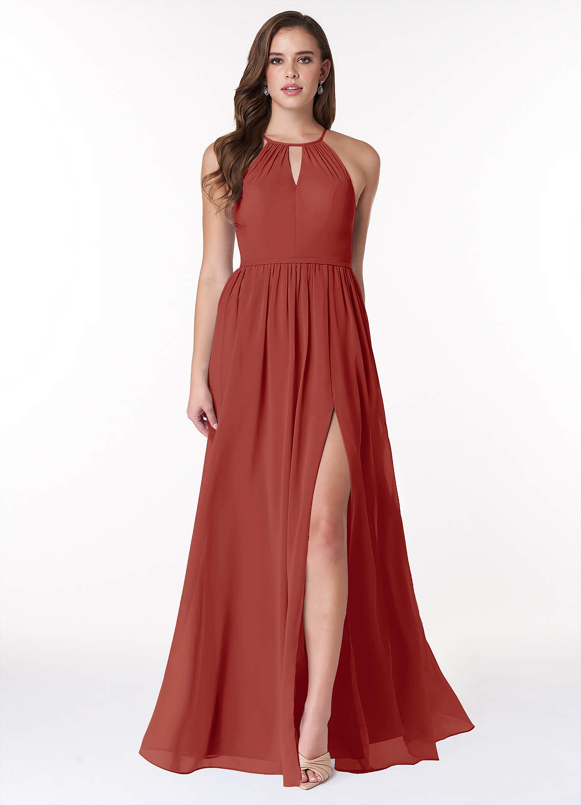 A-Line Pleated Chiffon Floor-Length Dress