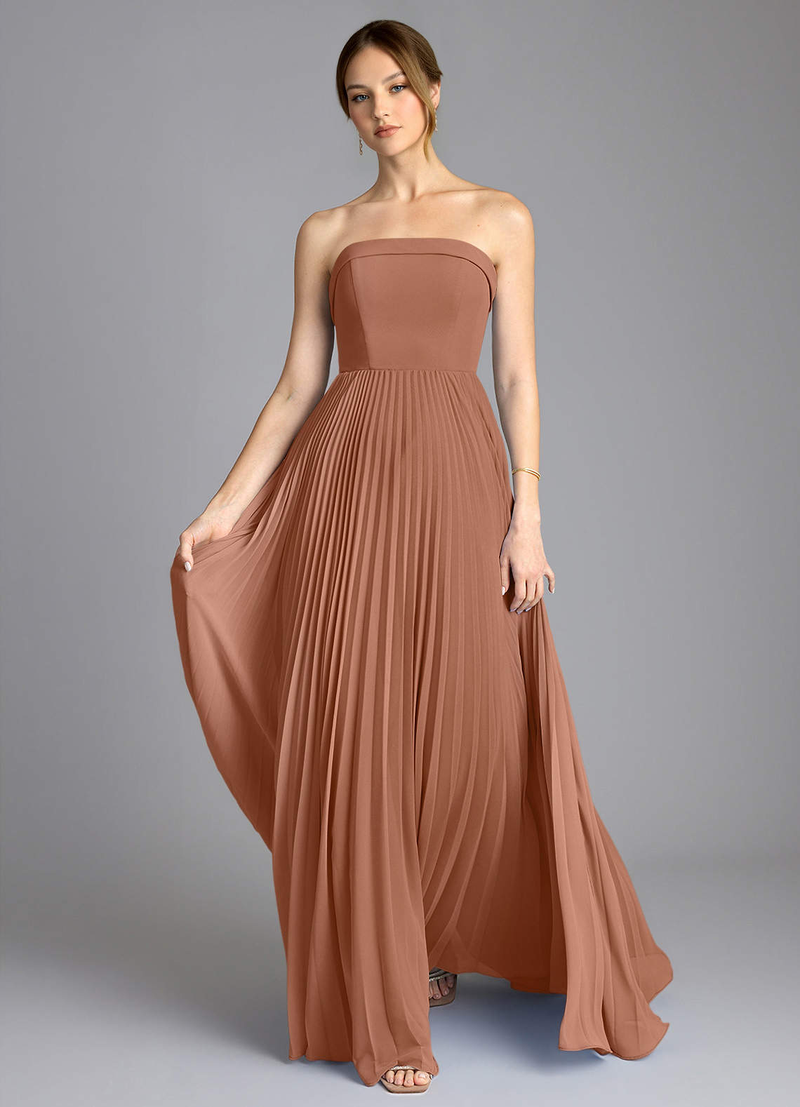 Bronzer A-Line Strapless Chiffon Dress