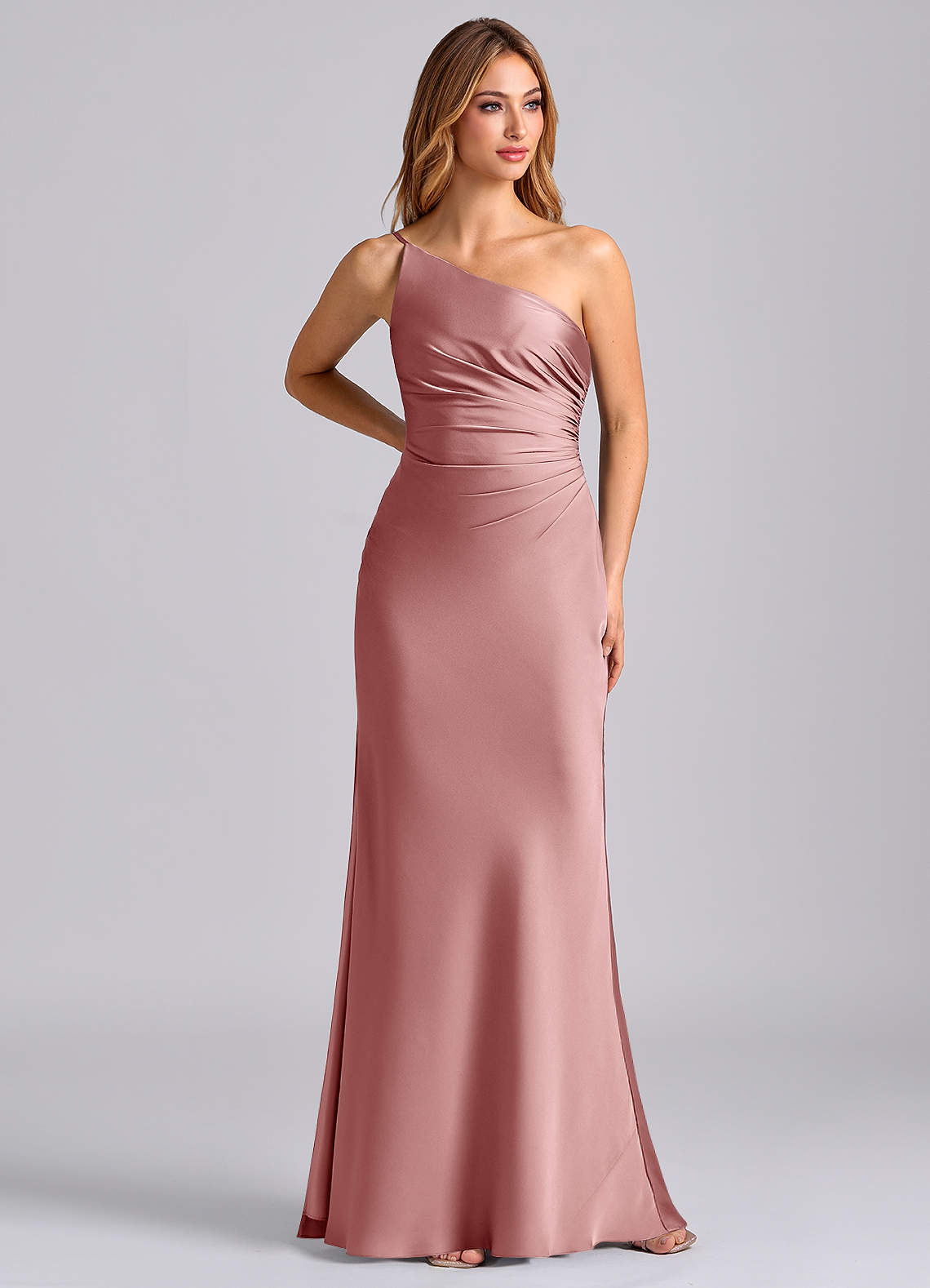 Dusty Rose Mermaid One Shoulder Stretch Satin Dress