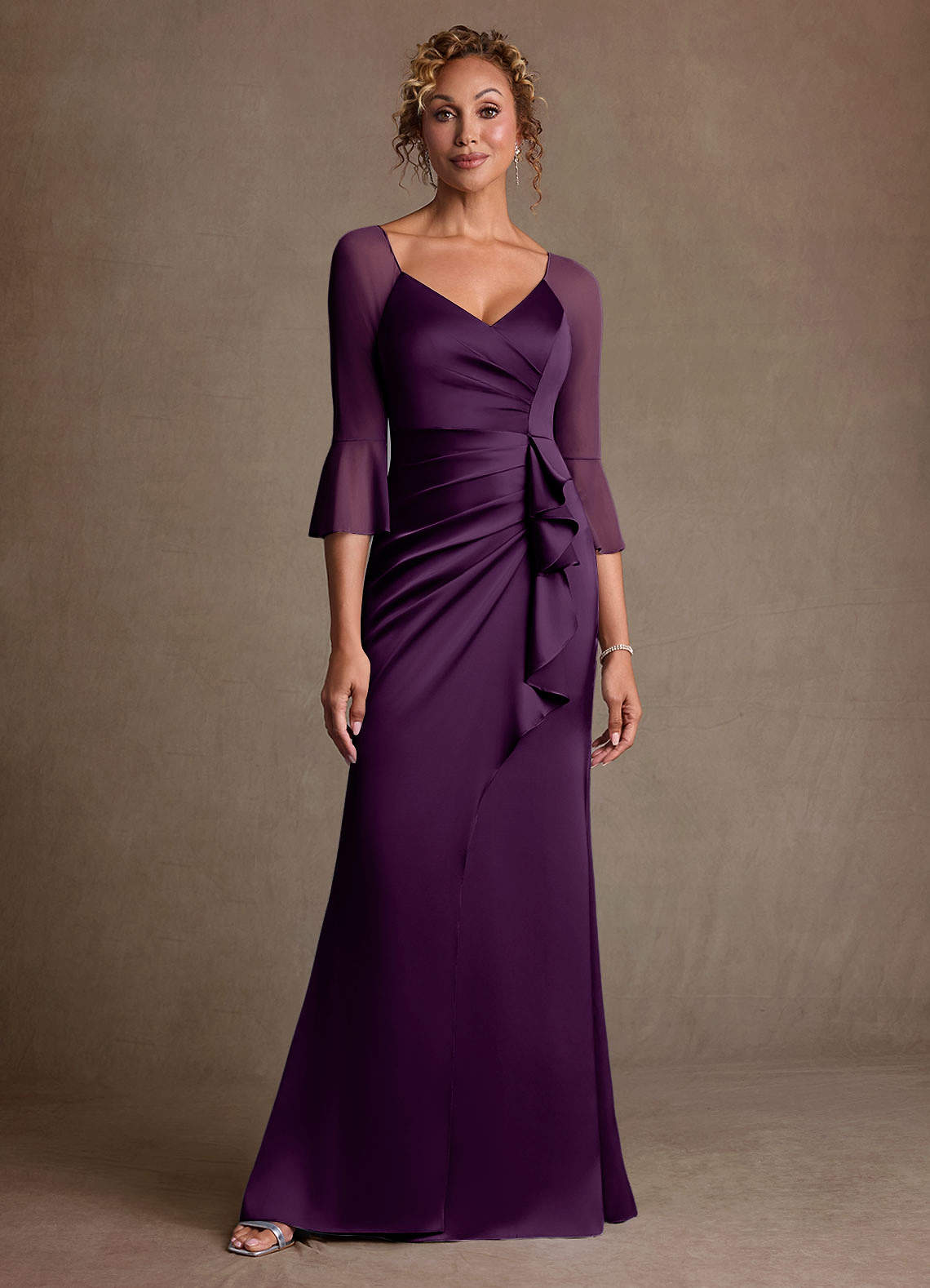 Grape Sheath Pleated Mesh Dress