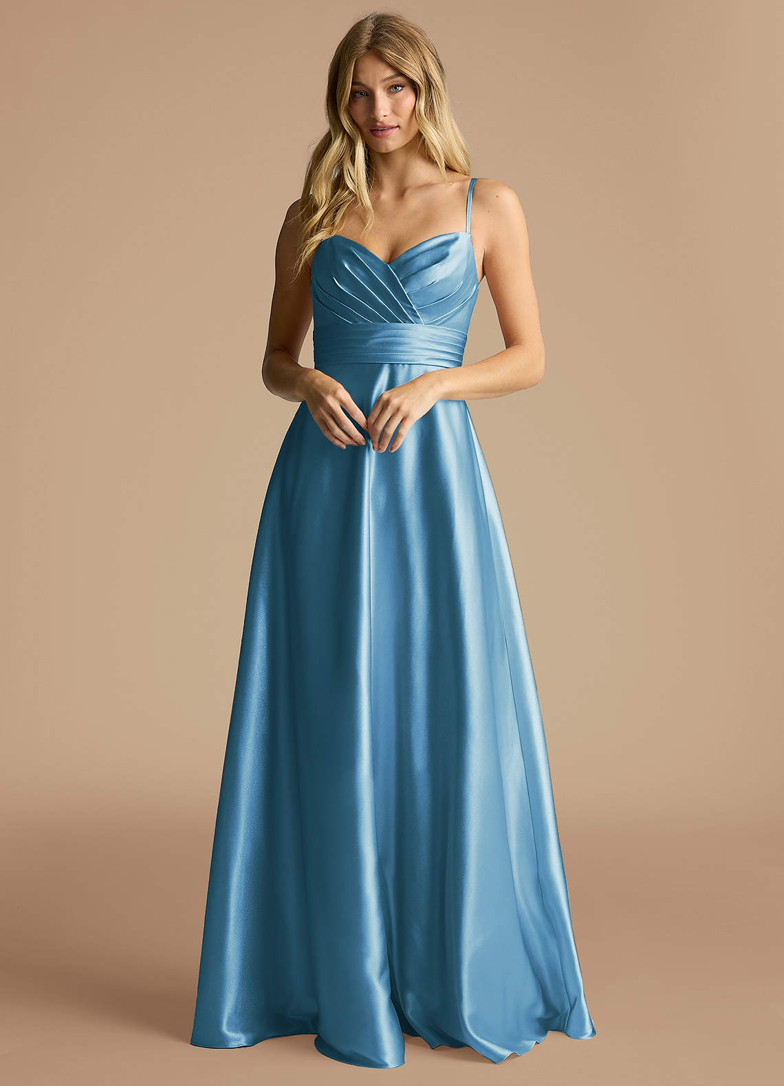 Steel Blue A-Line Sweetheart Neckline Metallic Satin Dress