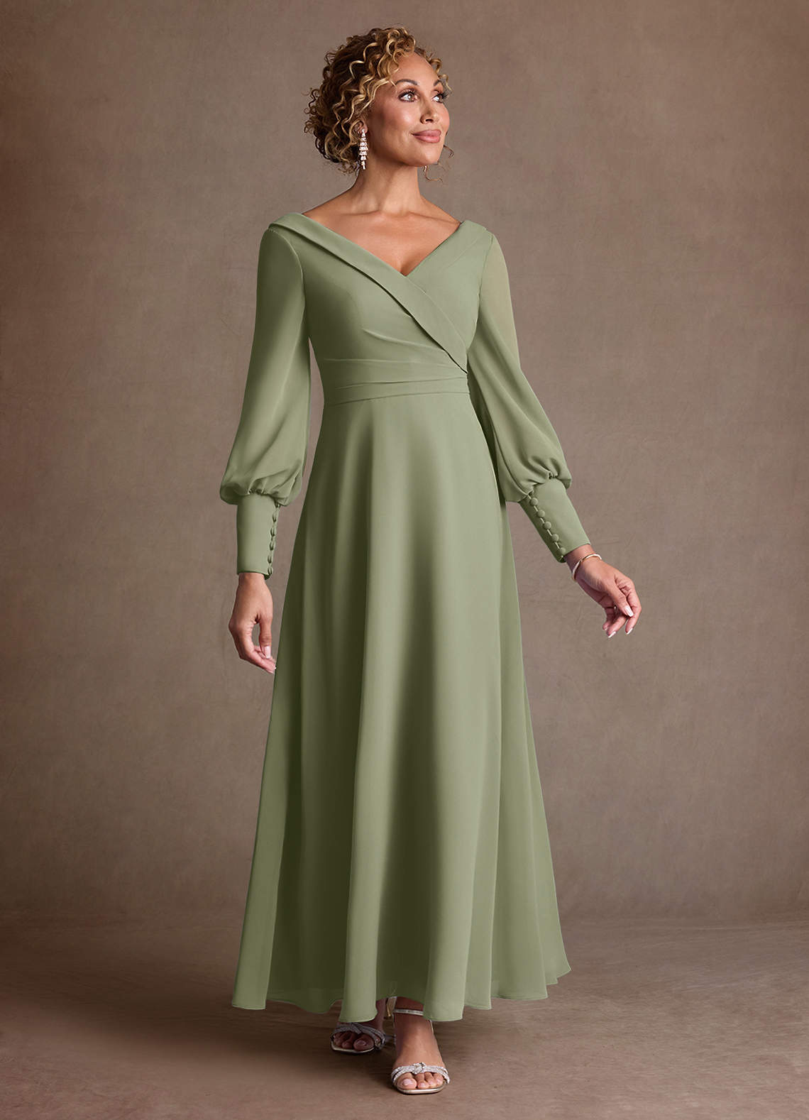 Pistachio A-Line Pleated Chiffon Dress
