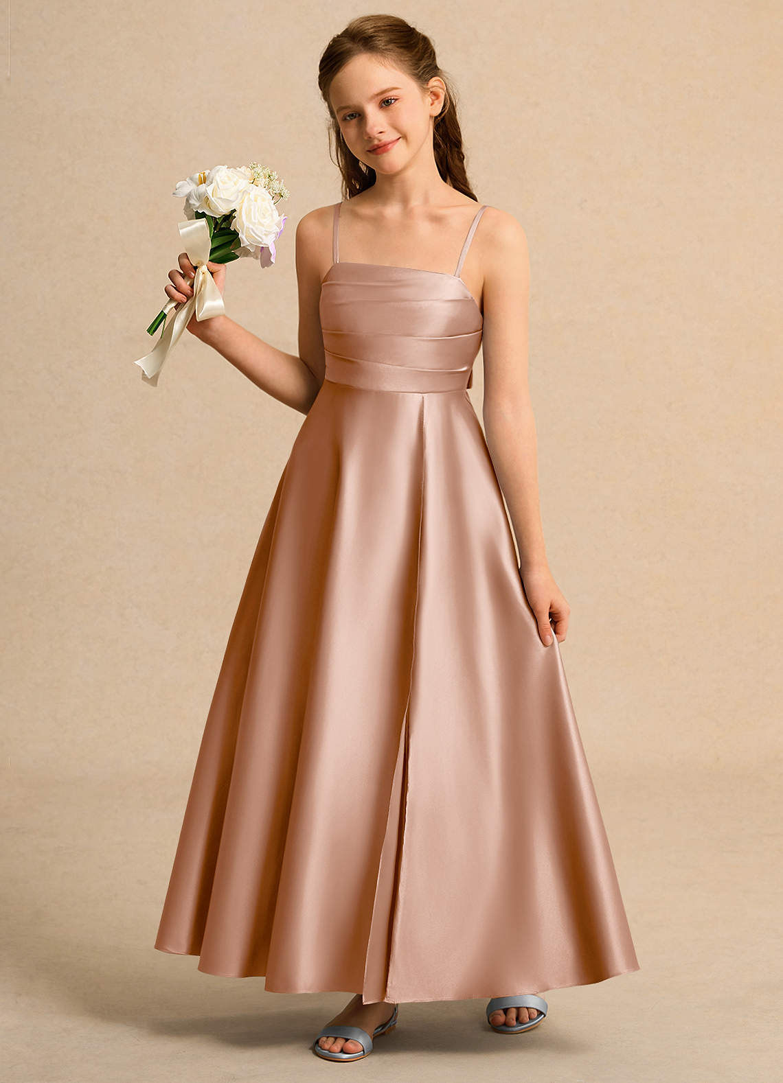 Champagne Rose A-Line Pleated Matte Satin Dress