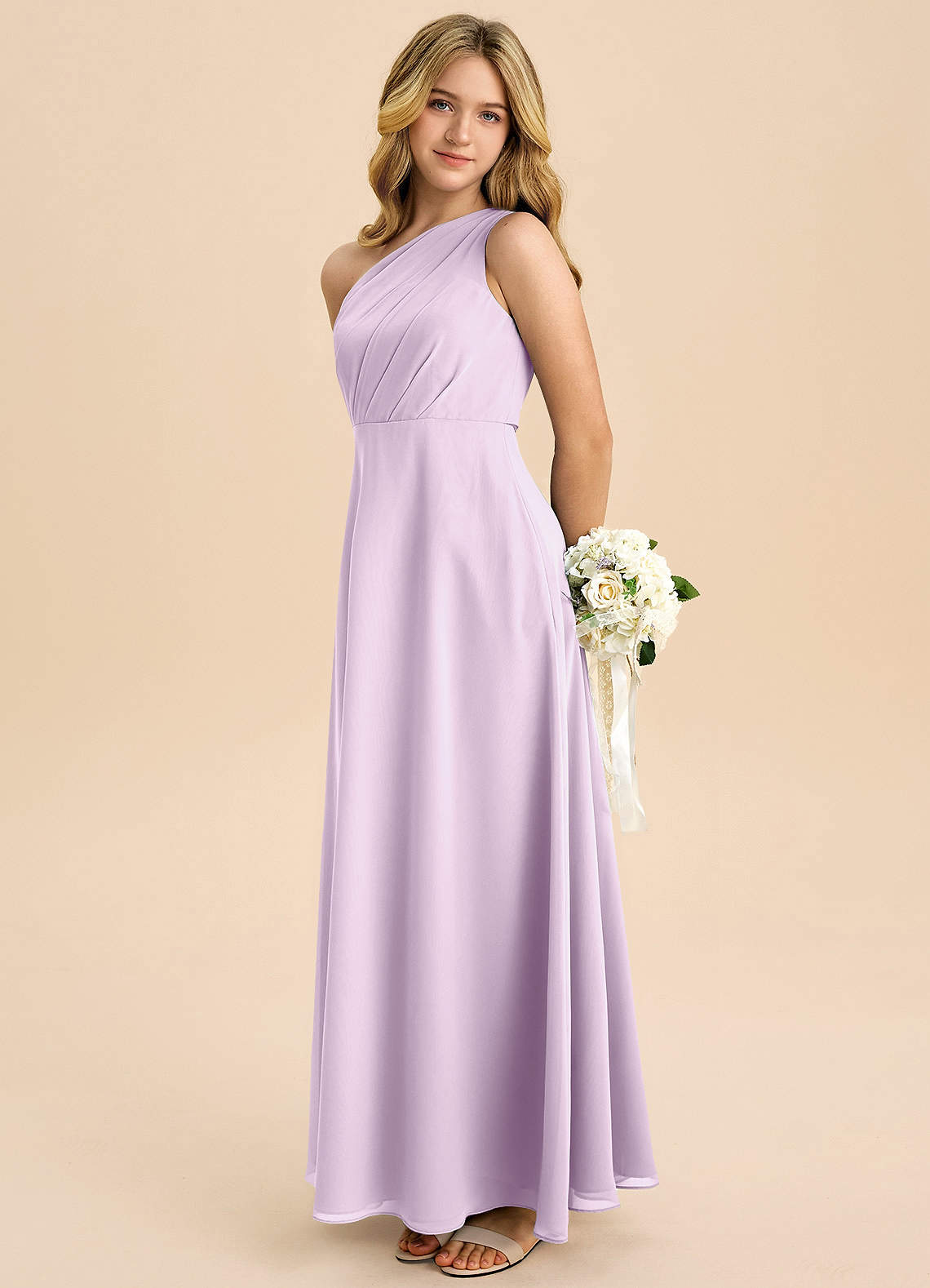 Frosted Lilac A-Line Pleated Chiffon Dress