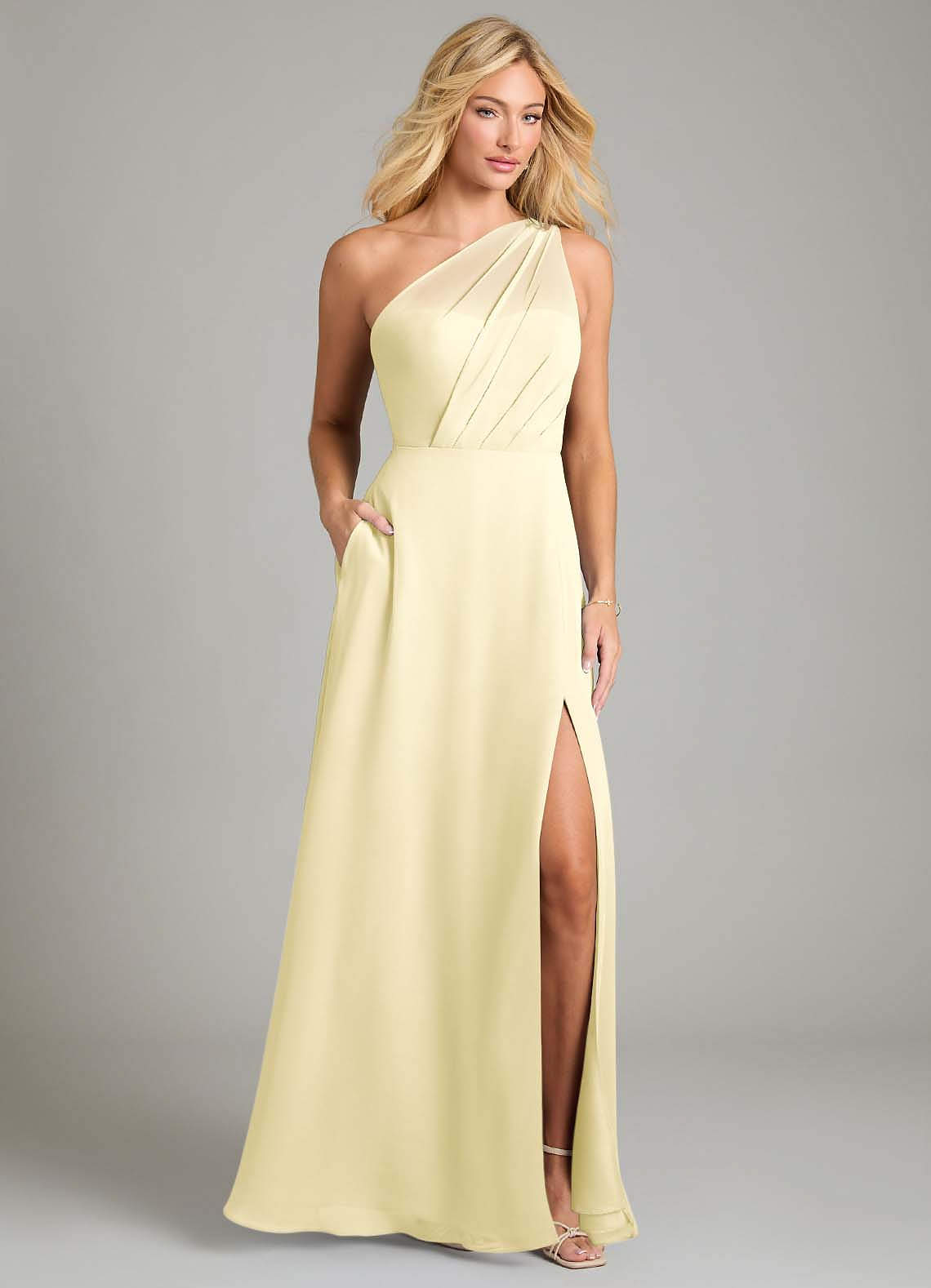 Lemon Sorbet A-Line One Shoulder Chiffon Dress