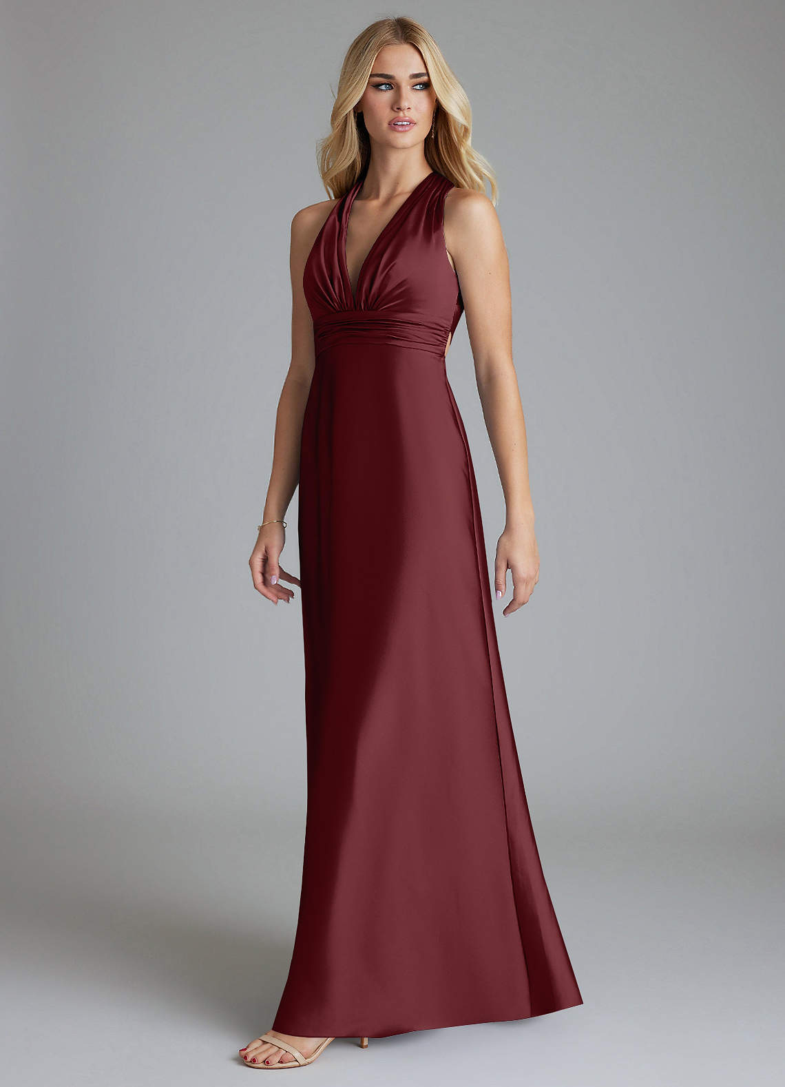 Dusty Sage A-Line Pleated Stretch Satin Dress