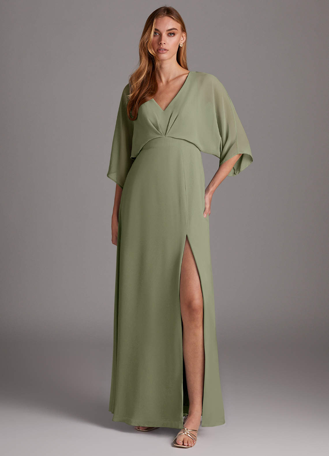 Black A-Line V-Neck Long Sleeve Chiffon Dress