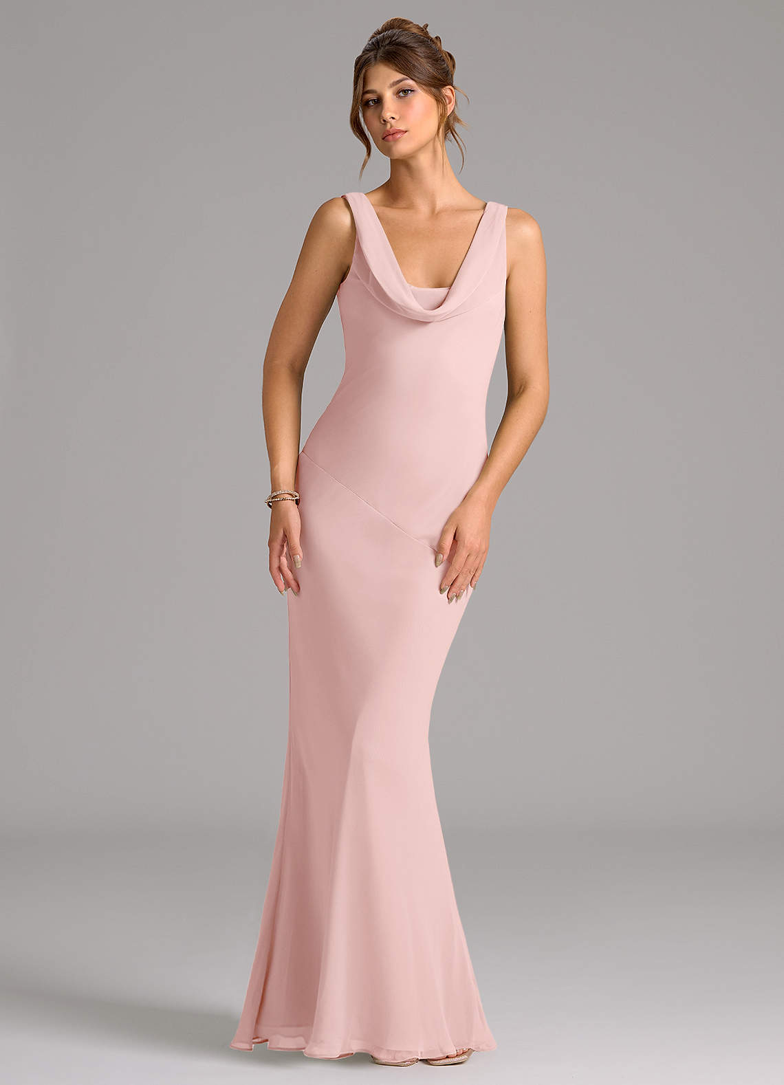 Powder Pink Mermaid Pleated Chiffon Dress