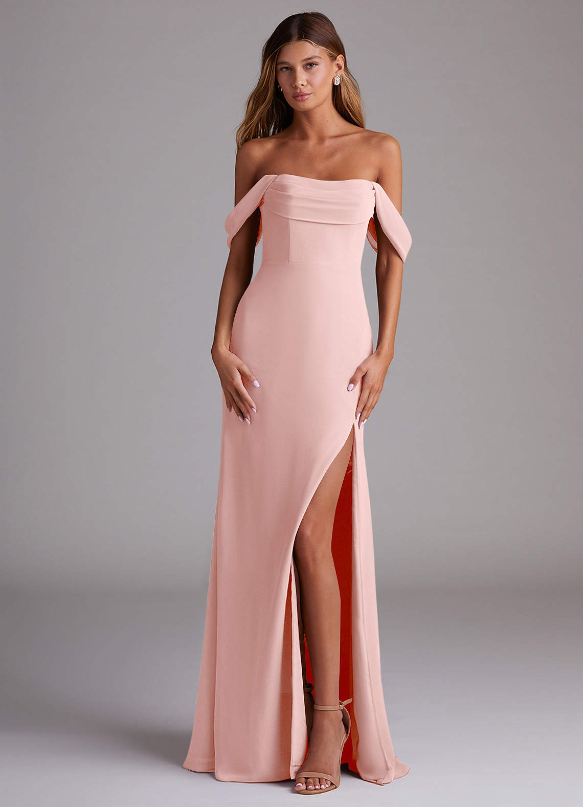 Powder Pink A-Line Off the Shoulder Chiffon Convertible Dress