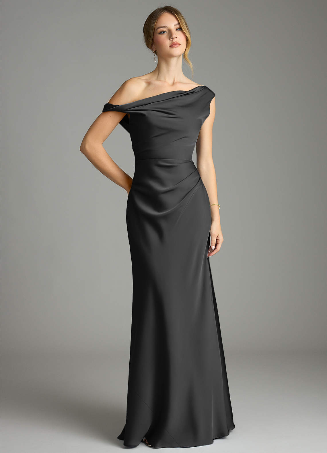 Black Mermaid Off the Shoulder Stretch Satin Dress