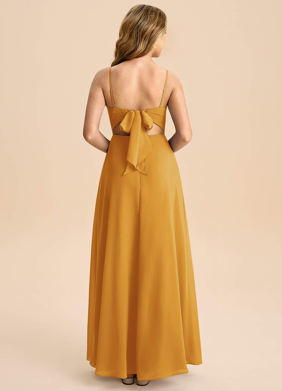 Butterscotch A-Line Bow Chiffon Dress