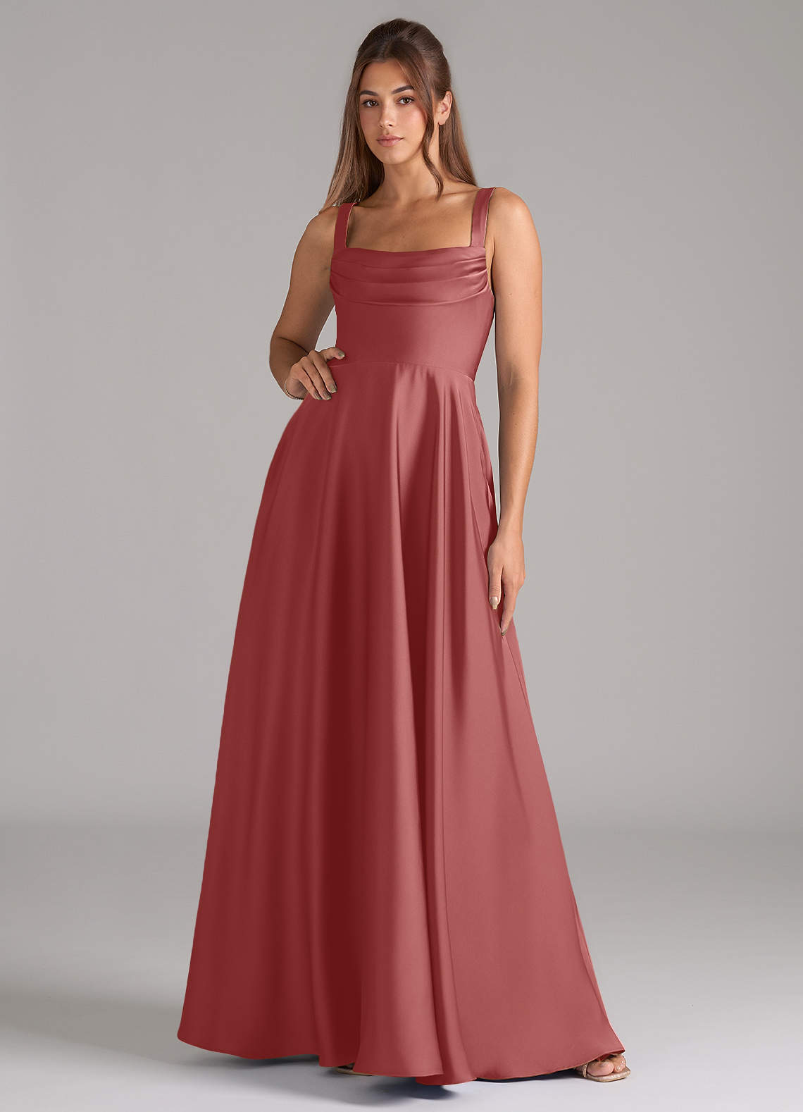 Antique Rose A-Line Pleated Stretch Satin Dress