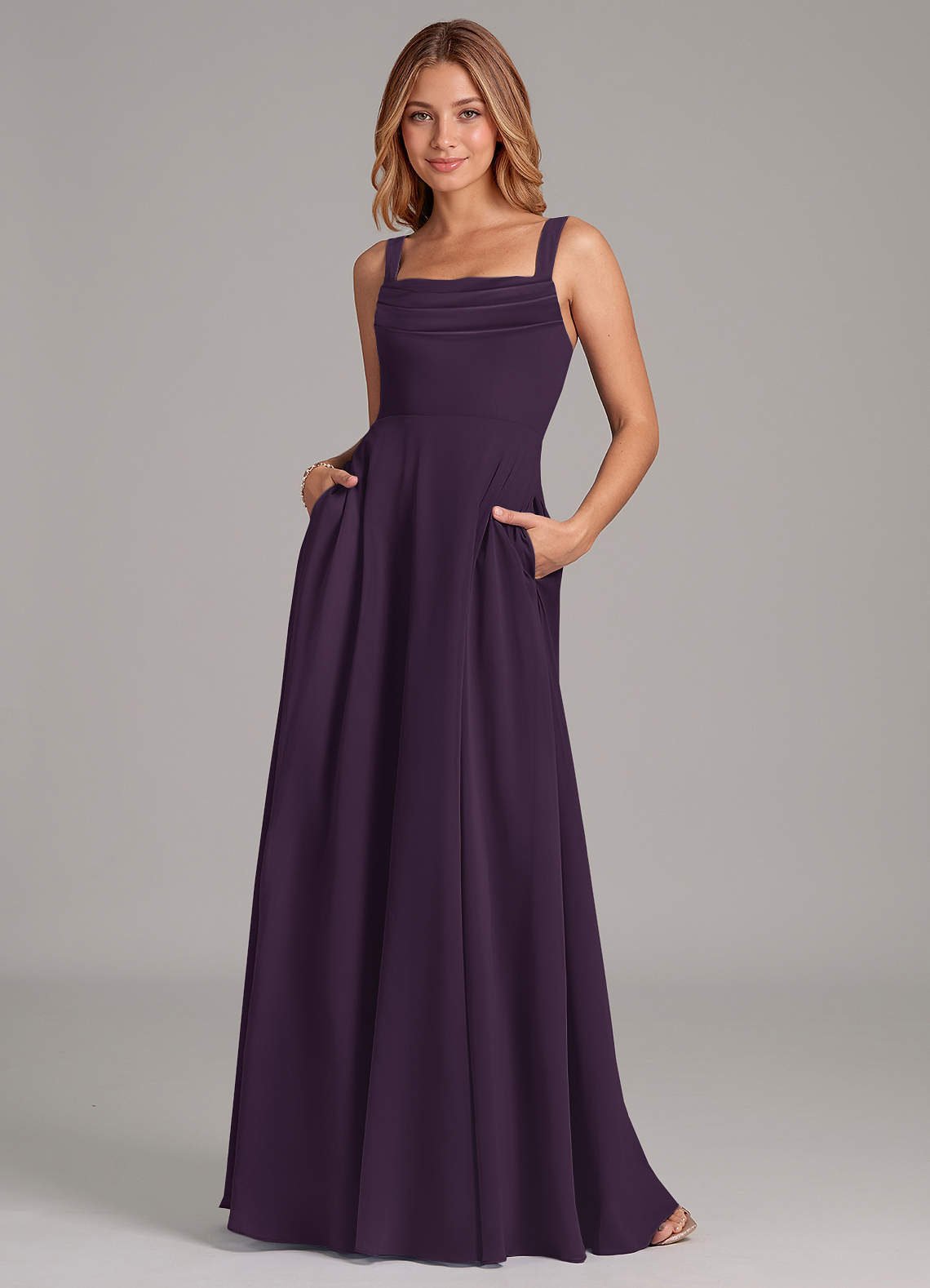Plum A-Line Pleated Chiffon Dress