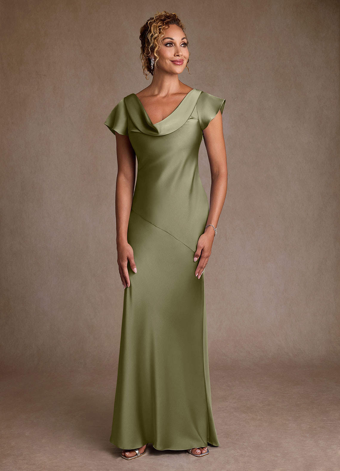 Pistachio Mermaid Pleated Stretch Satin Dress