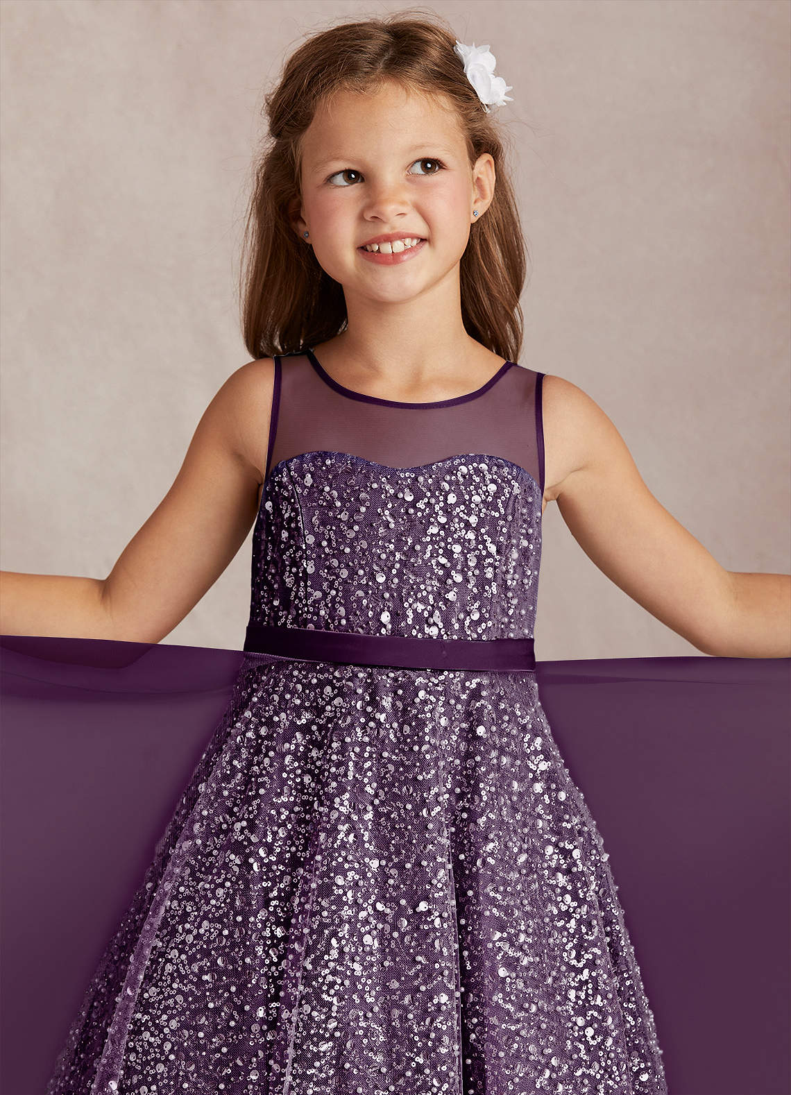 Azazie Siwa Flower Girl Dresses Grape A-Line Beaded Tulle Dress image1