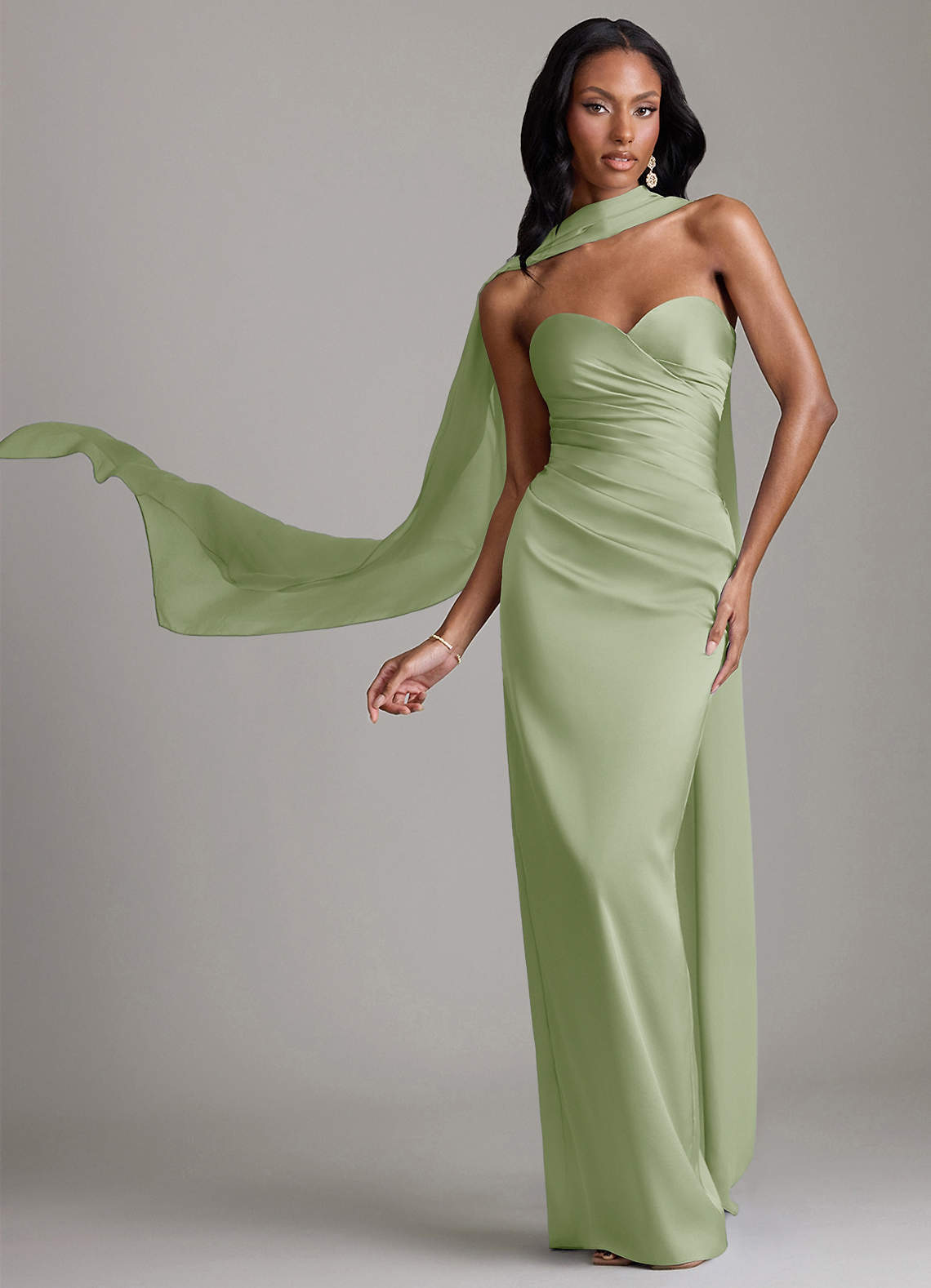 Dusty Sage Sheath Strapless Stretch Satin Dress