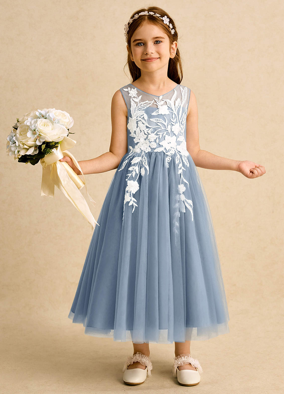 Dusty Blue Ball-Gown Lace Dress