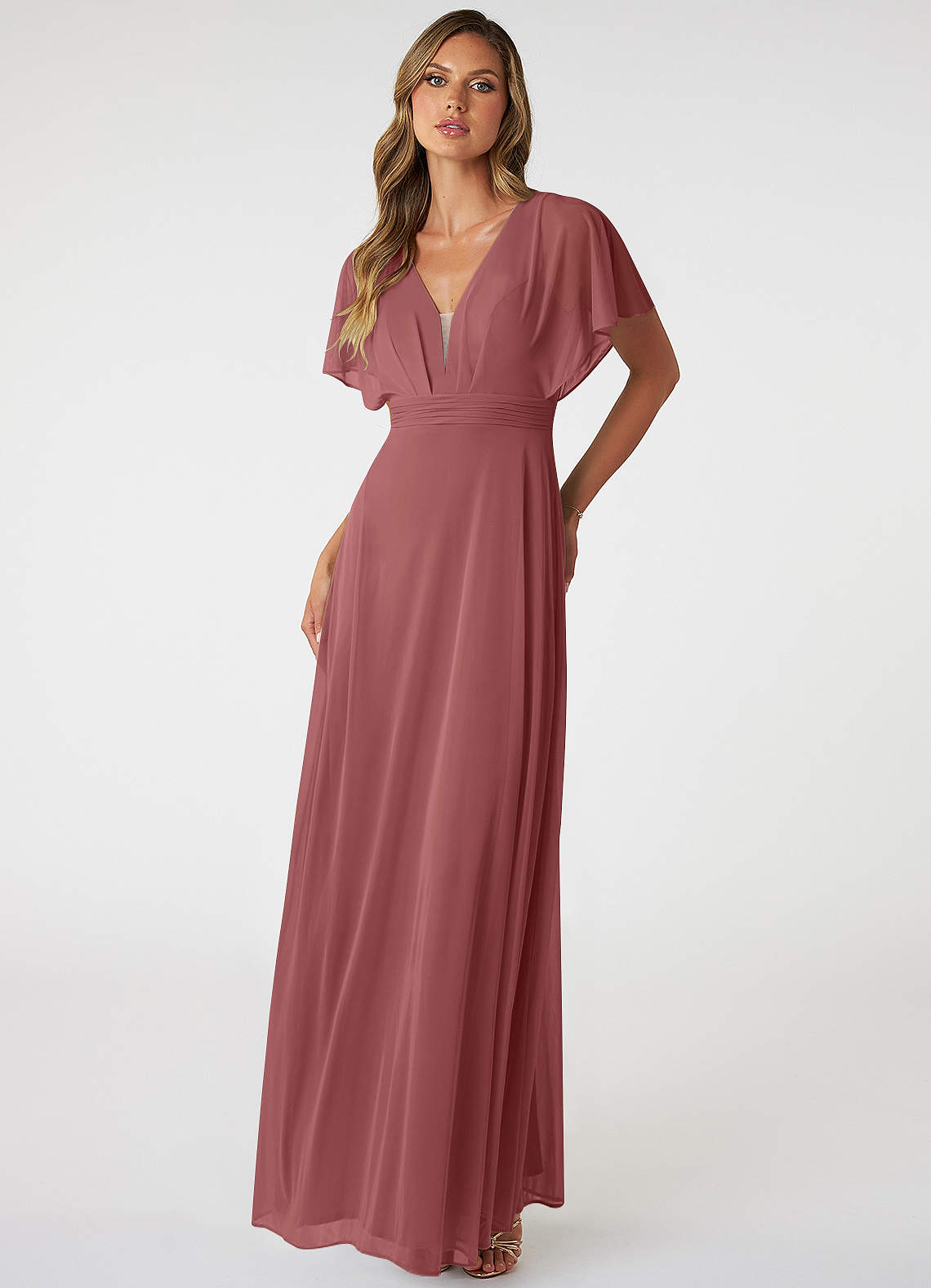 Dusty Blue A-Line Pleated Mesh Dress