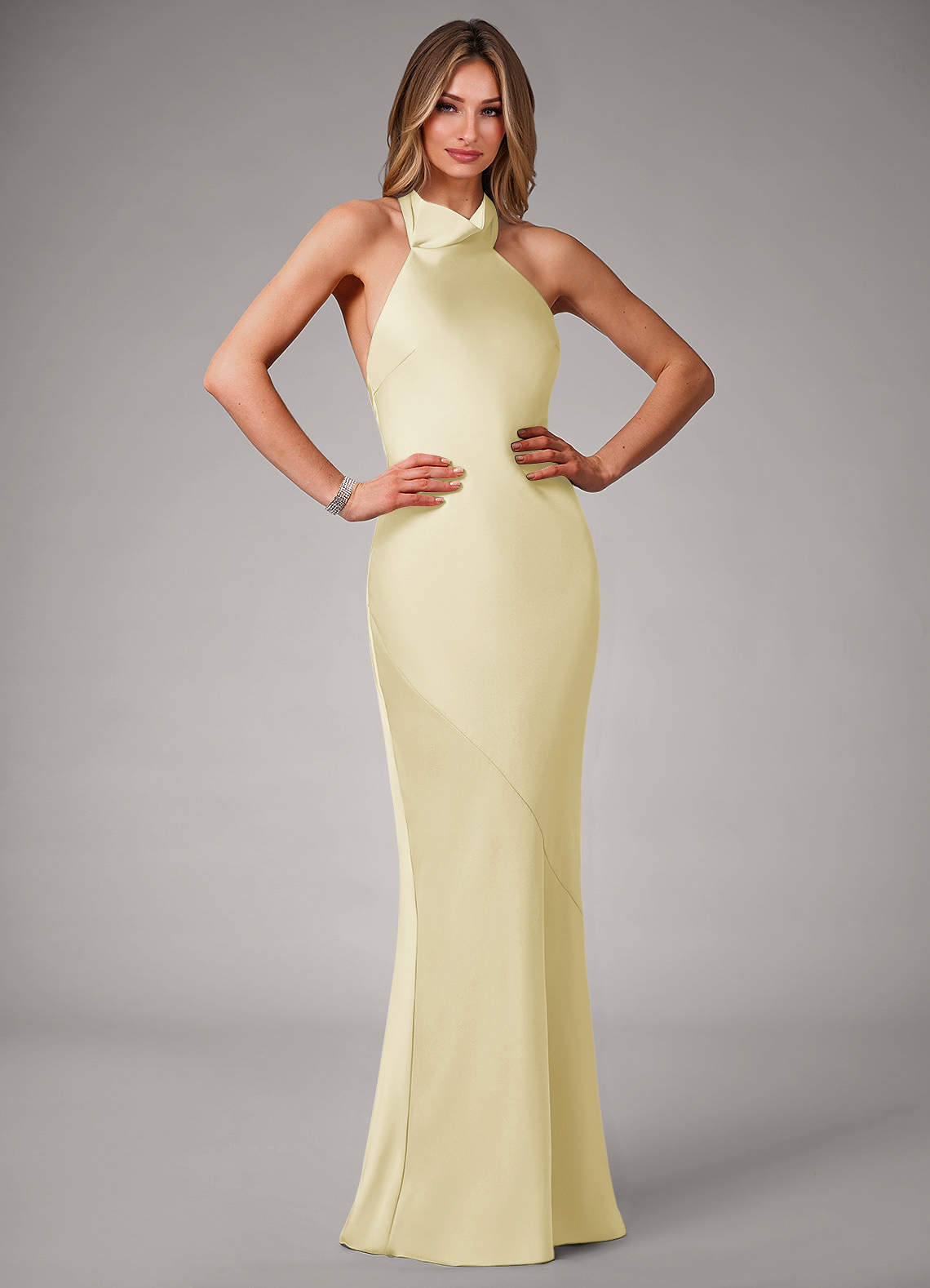 Lemon Sorbet Mermaid High Neck Stretch Satin Dress