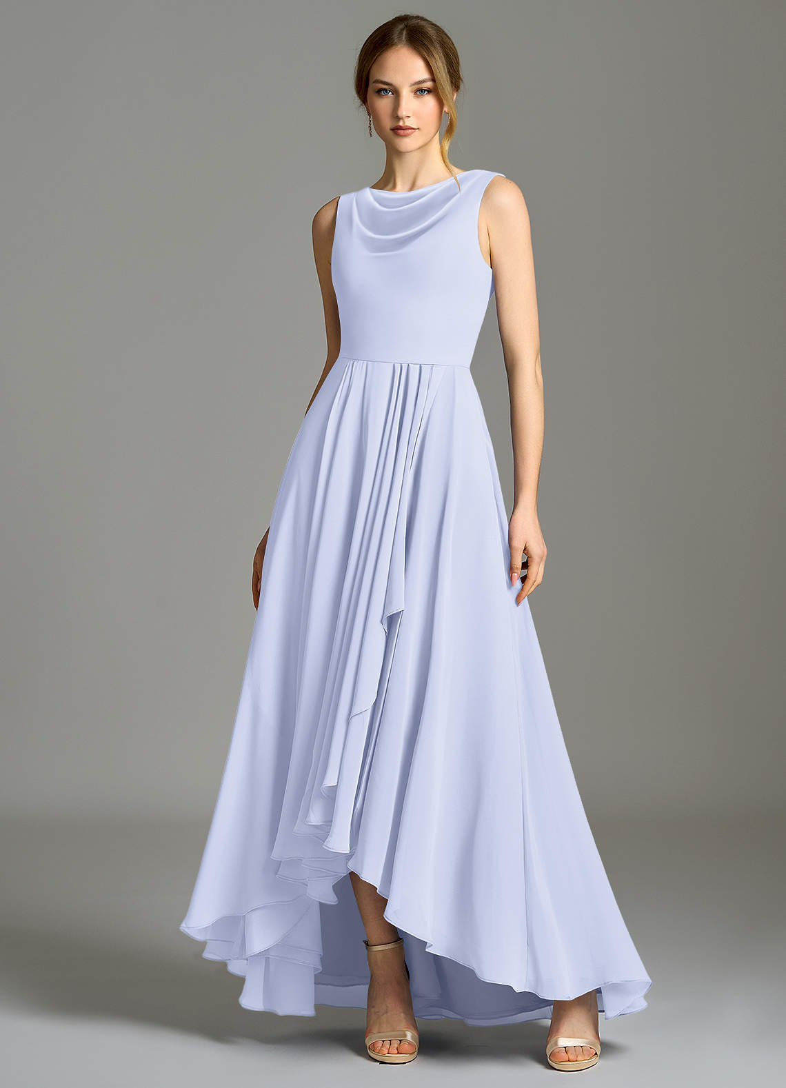 Lavender A-Line Pleated Chiffon Dress
