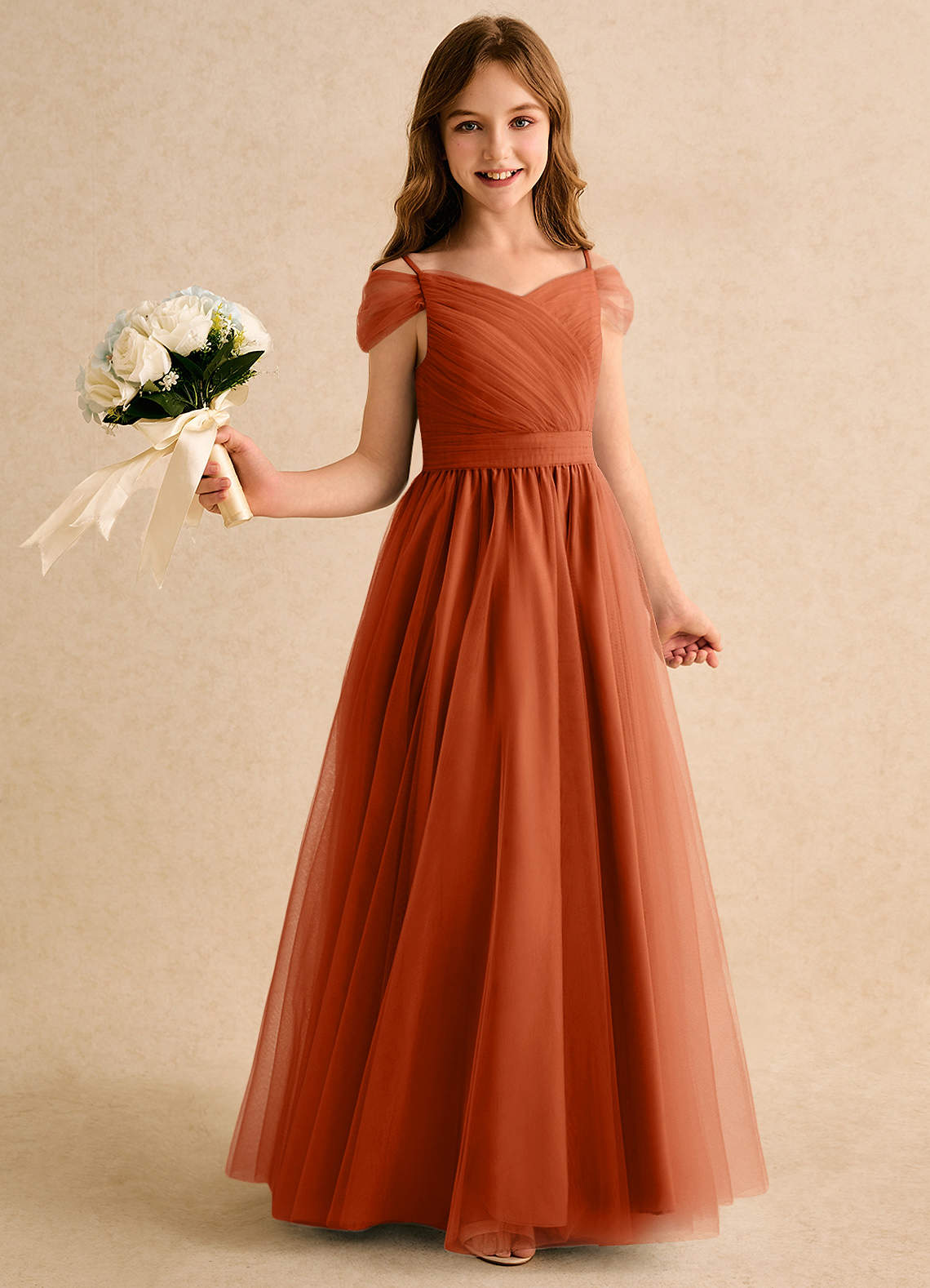 Burnt Orange A-Line Off the Shoulder Tulle Dress