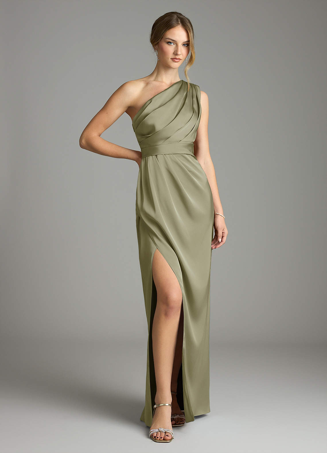 Dusty Blue Sheath One Shoulder Stretch Satin Dress